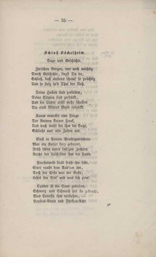 Schloß Böckelheim. Sage und Geschichte.