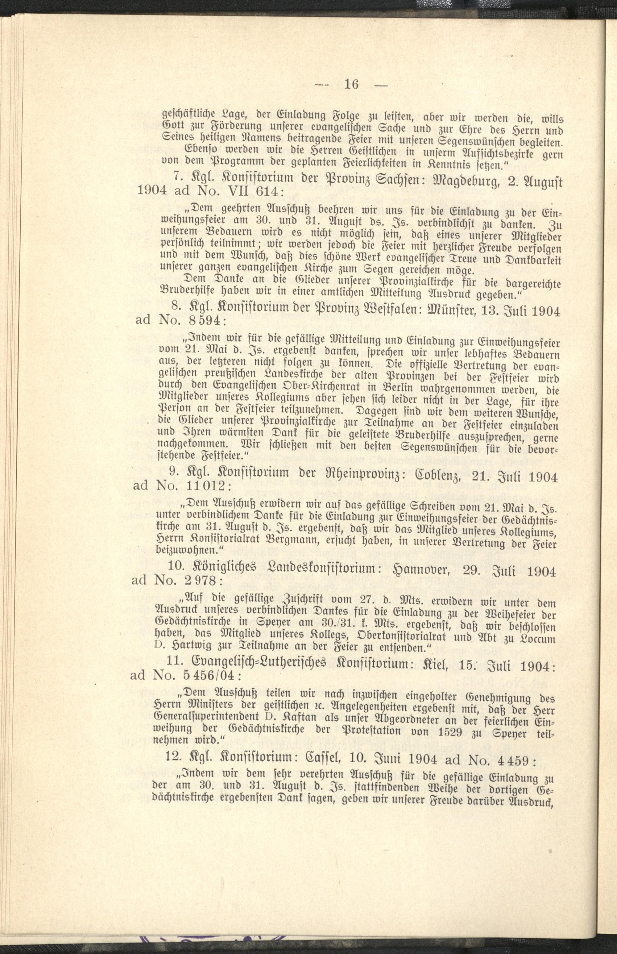 Weihefeier der Gedächtniskirche der Protestation von 1529 zu Speyer am 30. und 31....