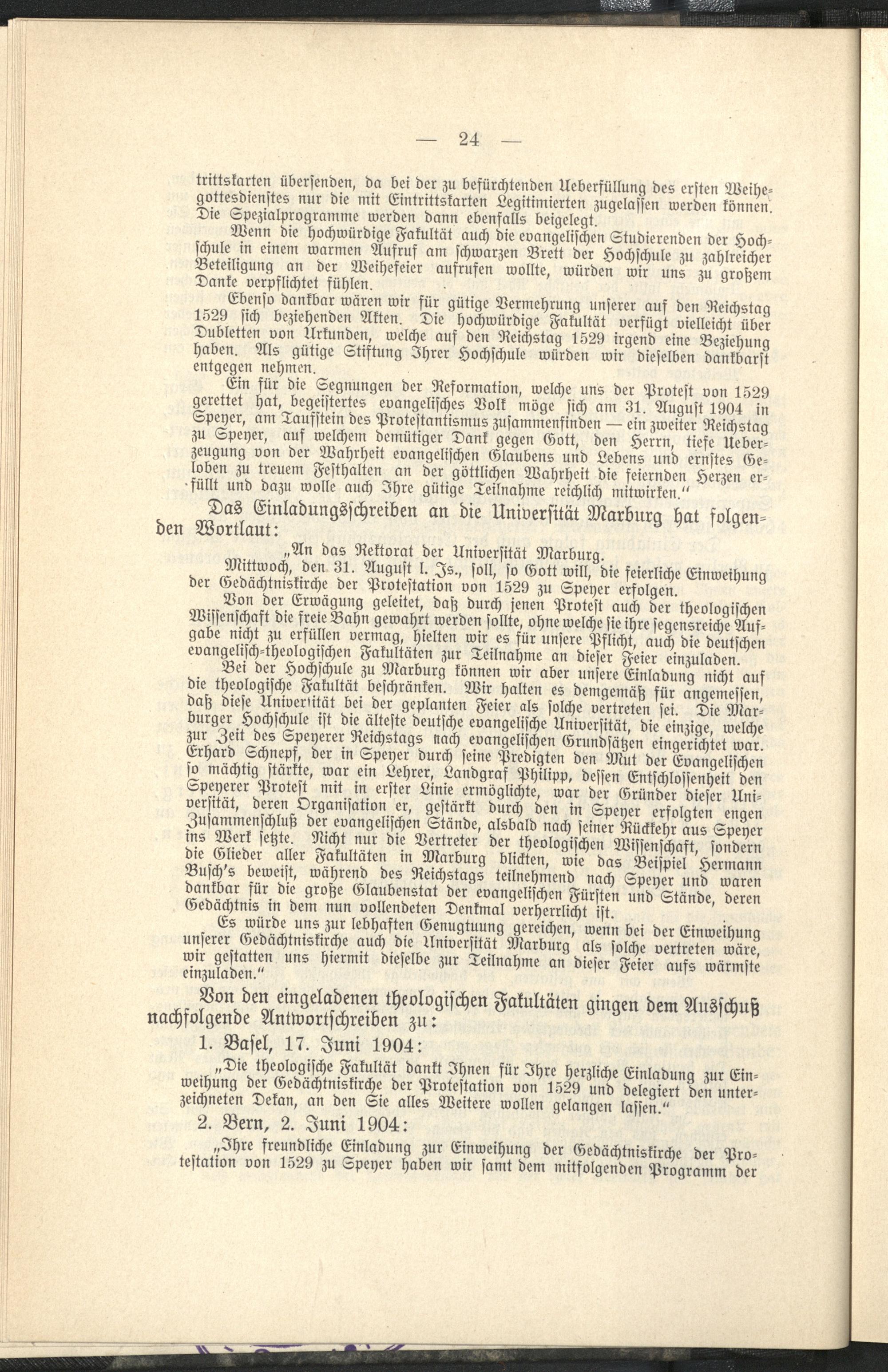 Weihefeier der Gedächtniskirche der Protestation von 1529 zu Speyer am 30. und 31. August und 1. September 1904 / dargest. von L. Gümbel