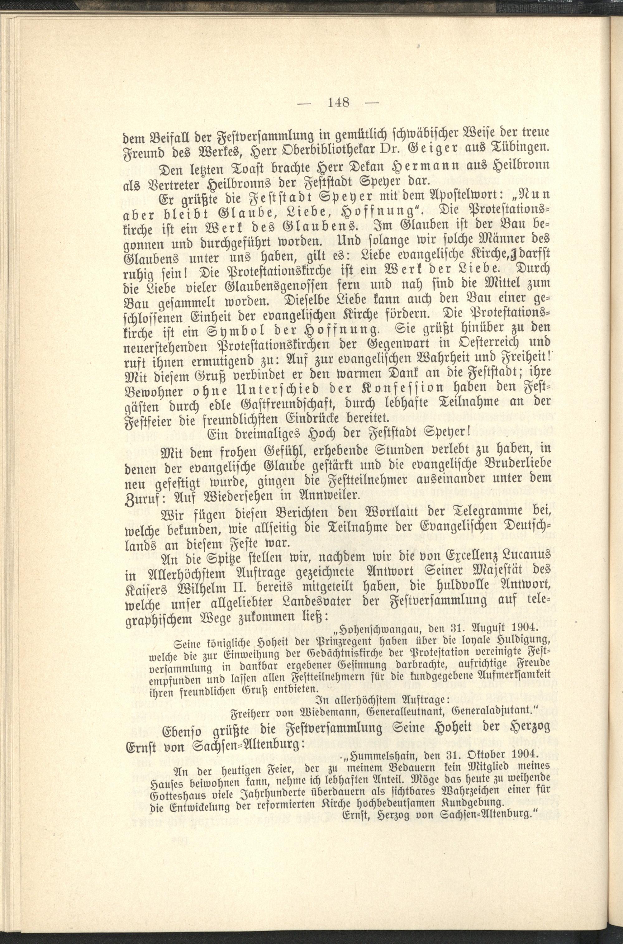 Weihefeier der Gedächtniskirche der Protestation von 1529 zu Speyer am 30. und 31. August und 1. September 1904 / dargest. von L. Gümbel