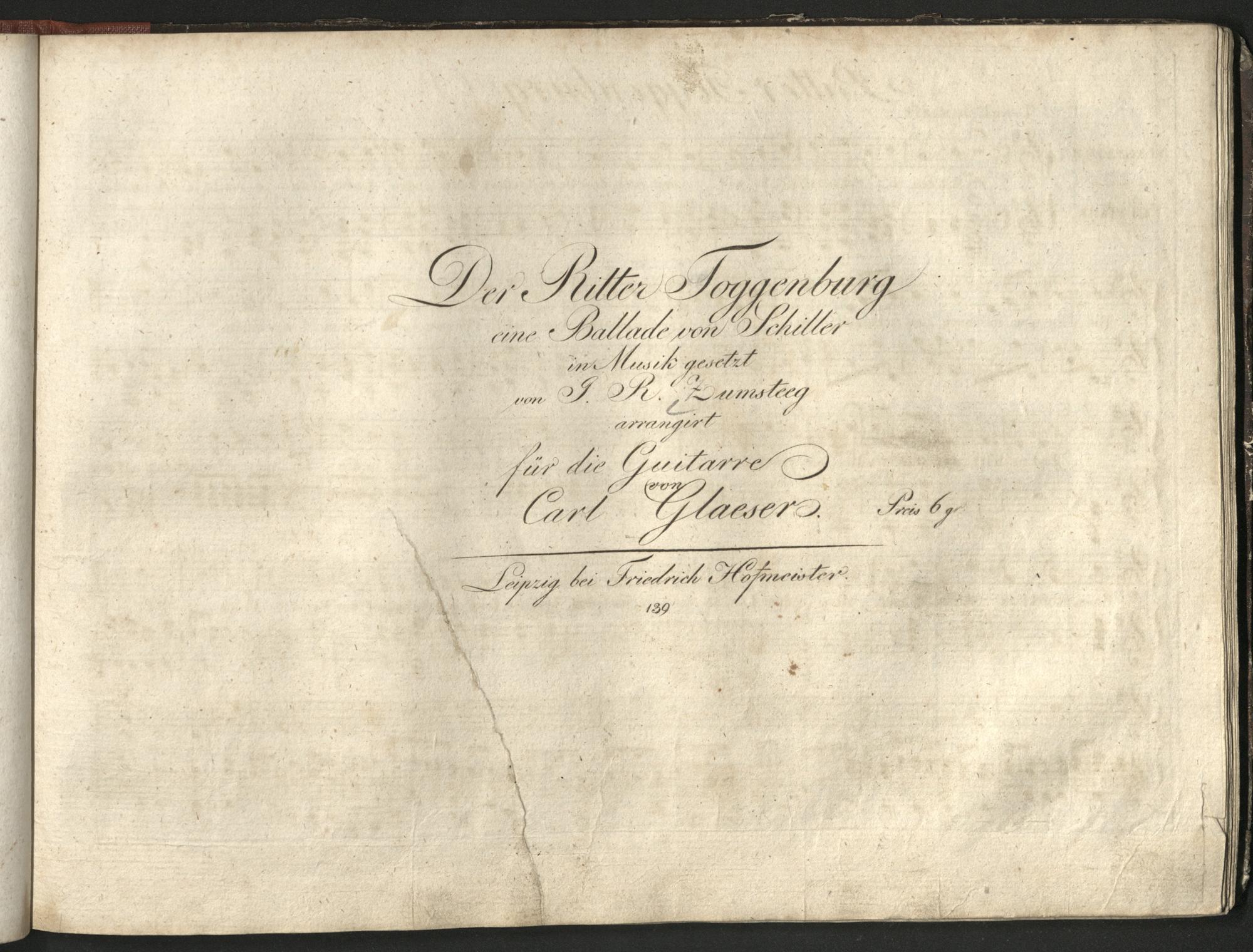 Der Ritter Toggenburg : eine Ballade von Schiller / in Musik gesetzt von J. R. Zumsteeg ; arrangirt für die Guitarre von Carl Glaeser