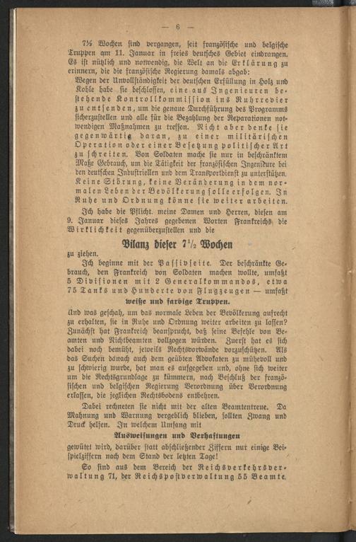 Die Bilanz des Ruhreinbruchs : Rede des Reichskanzlers Dr. Cuno im Reichstag am 6. März 1923