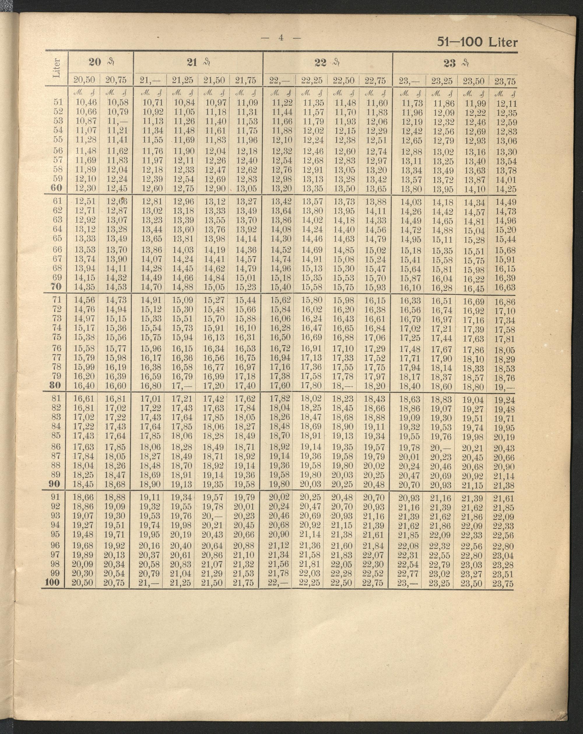 Tabellen zur Ermittlung des Bierpreises nach ganzen, halben und viertel Pfennige...