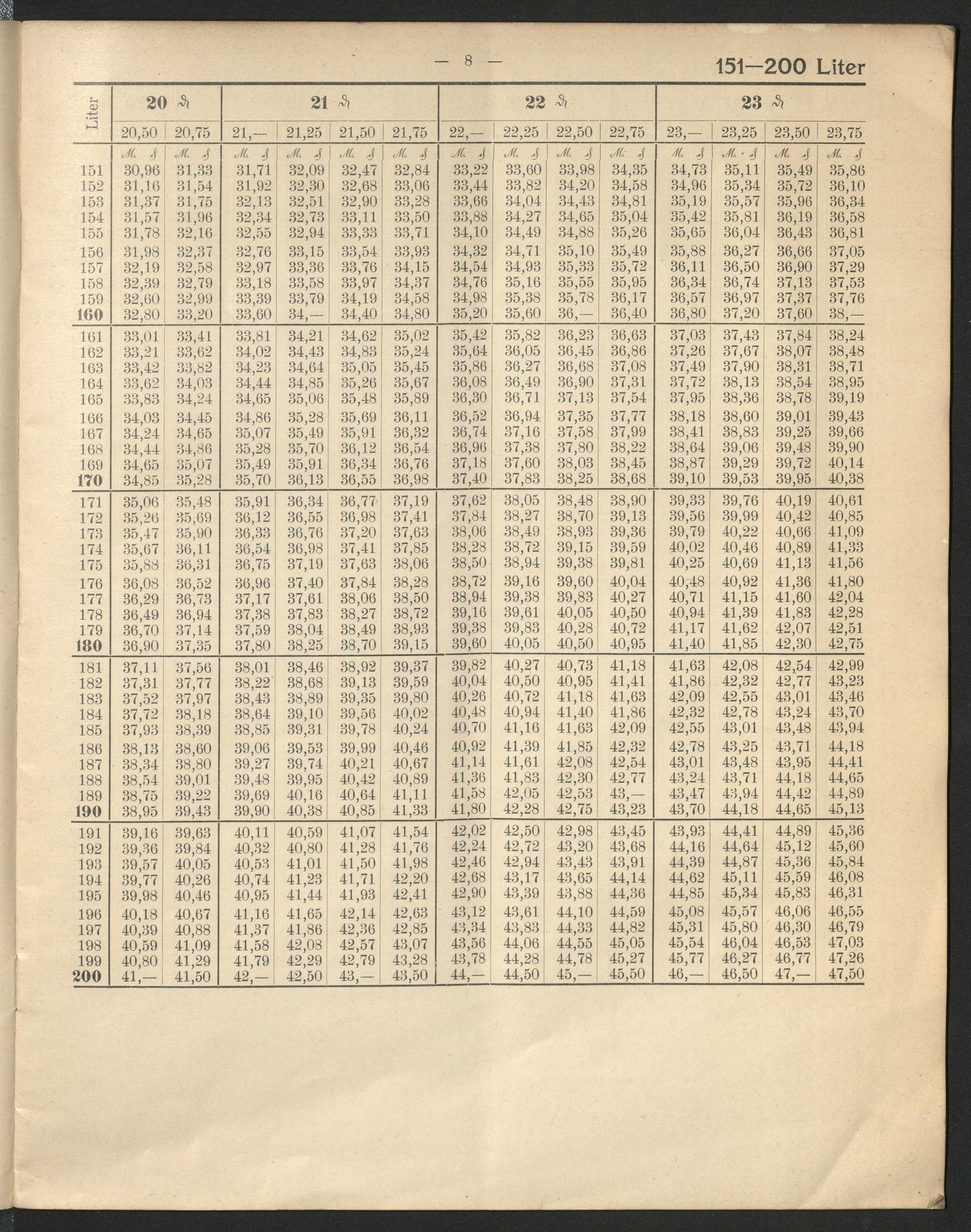 Tabellen zur Ermittlung des Bierpreises nach ganzen, halben und viertel Pfennige...