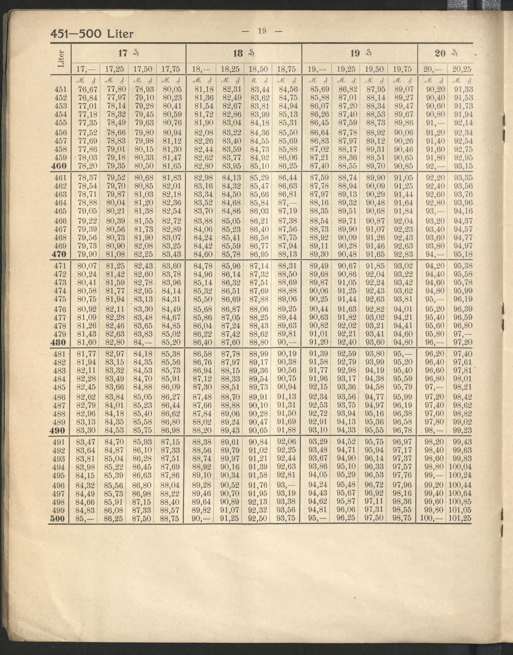 Tabellen zur Ermittlung des Bierpreises nach ganzen, halben und viertel Pfennige...