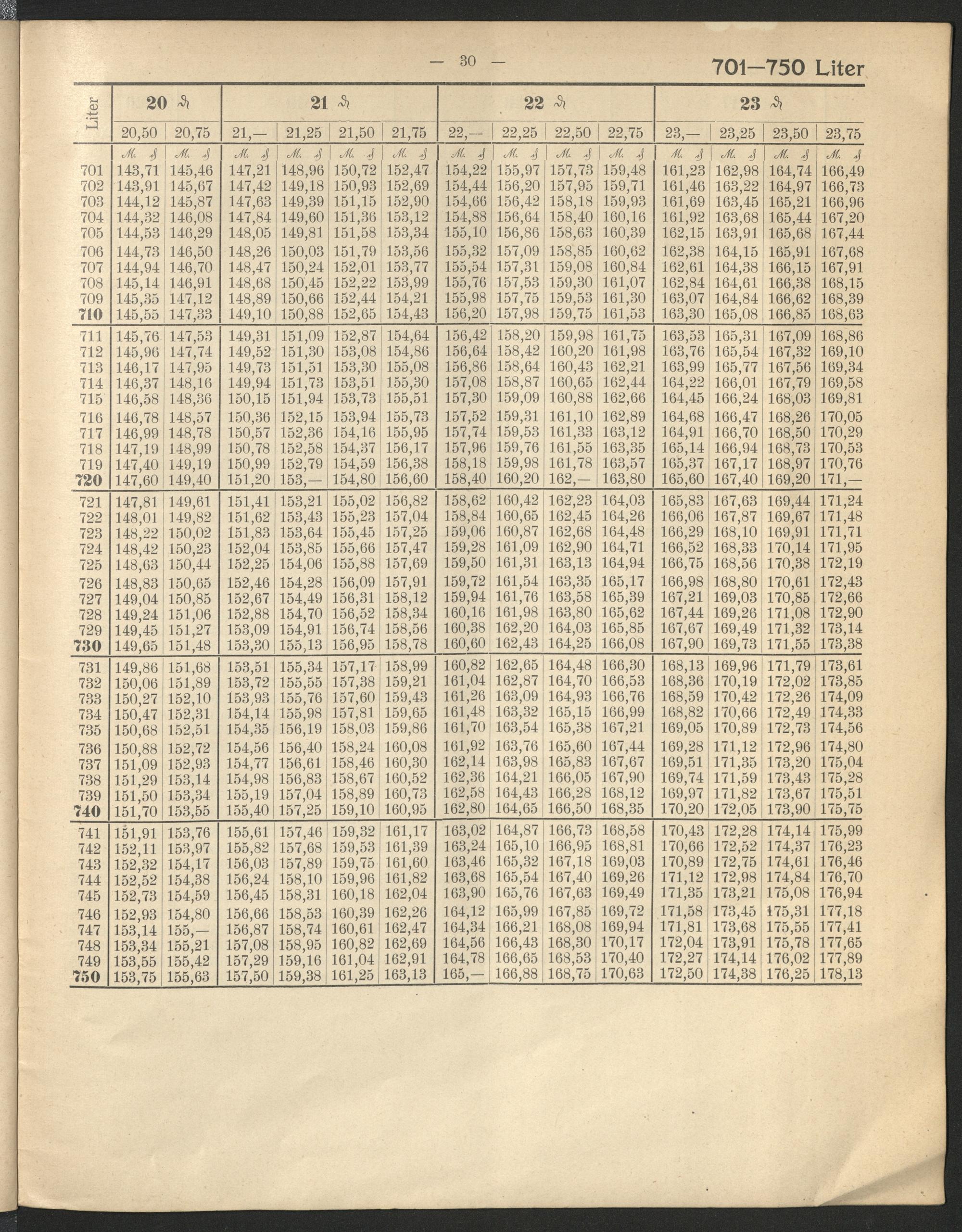 Tabellen zur Ermittlung des Bierpreises nach ganzen, halben und viertel Pfennige...