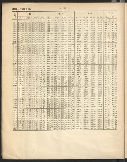 Tabellen zur Ermittlung des Bierpreises nach ganzen, halben und viertel Pfennige...