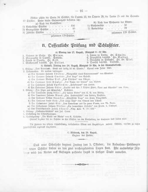 IX. Oeffentliche Prüfung und Schlußfeier.