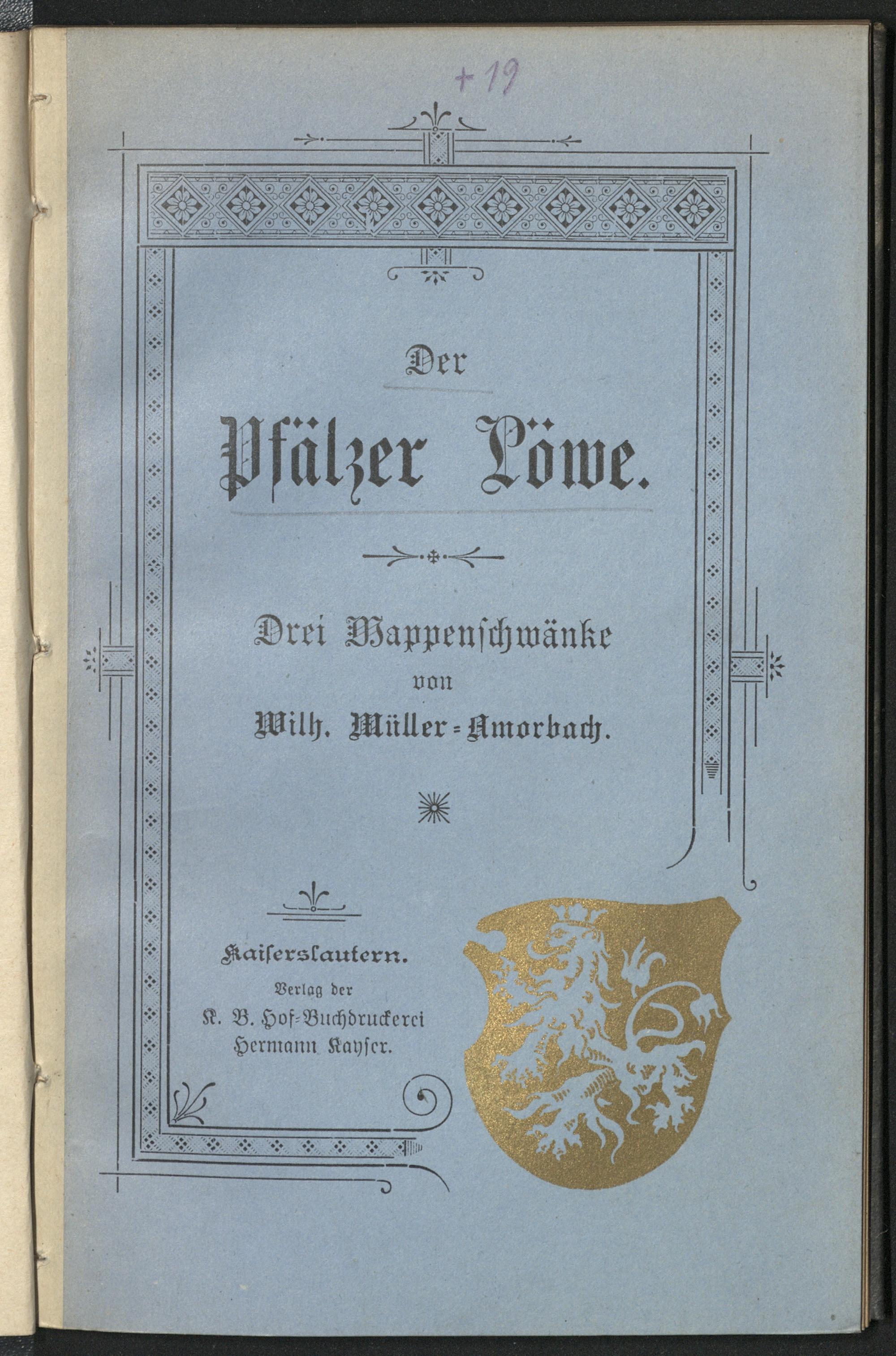 Der Pfälzer Löwe : drei Wappenschwänke / von Wilh. Müller-Amorbach