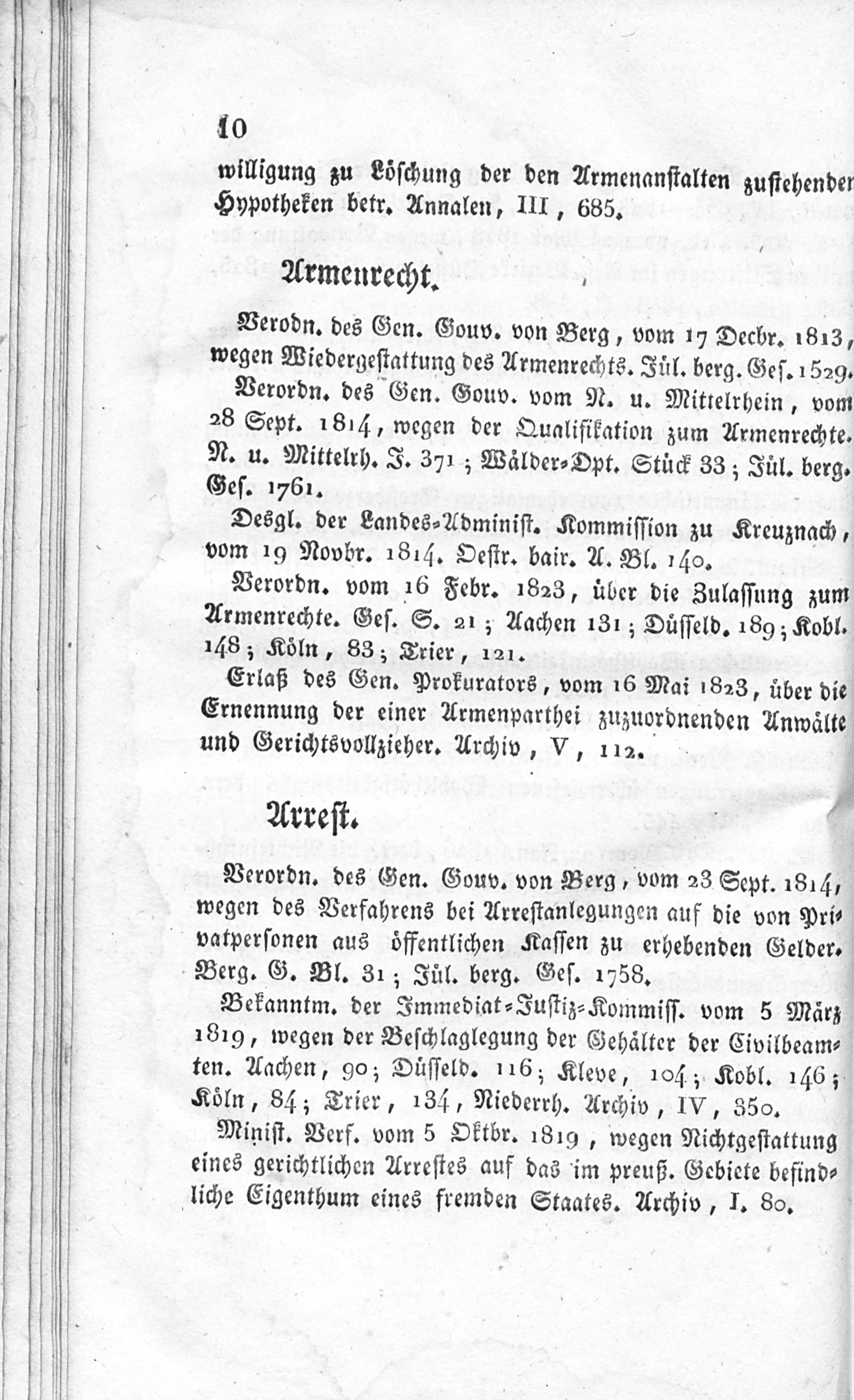 Uebersicht der während der provisorischen Verwaltung der Rheinprovinzen von 1814 bis 1816 bestandenen oberen Verwaltungsbehörden, der Dauer und der Bezirke derselben.