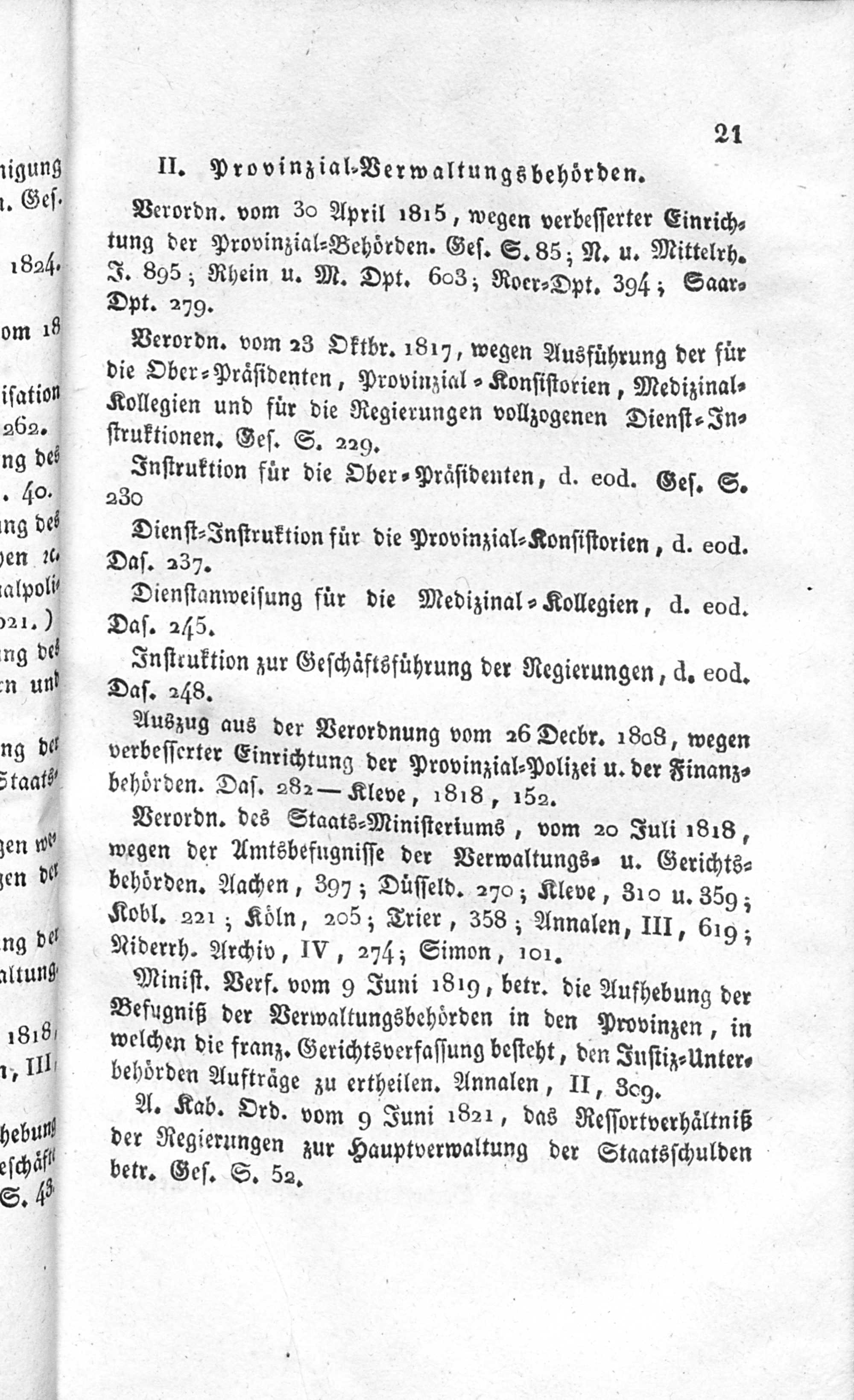 Uebersicht der während der provisorischen Verwaltung der Rheinprovinzen von 1814 bis 1816 bestandenen oberen Verwaltungsbehörden, der Dauer und der Bezirke derselben.