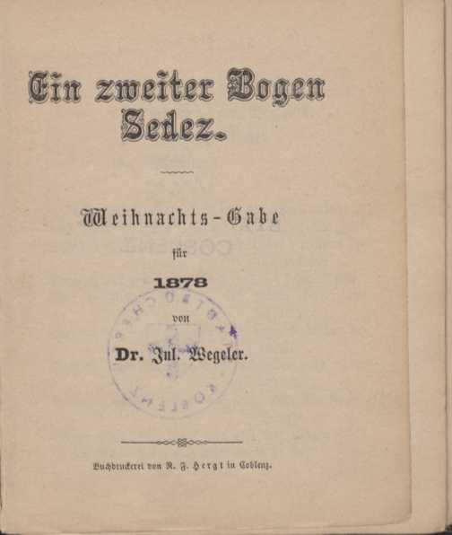 Ein zweiter Bogen Sedez : Weihnachts-Gabe für 1878 / von Jul. Wegeler