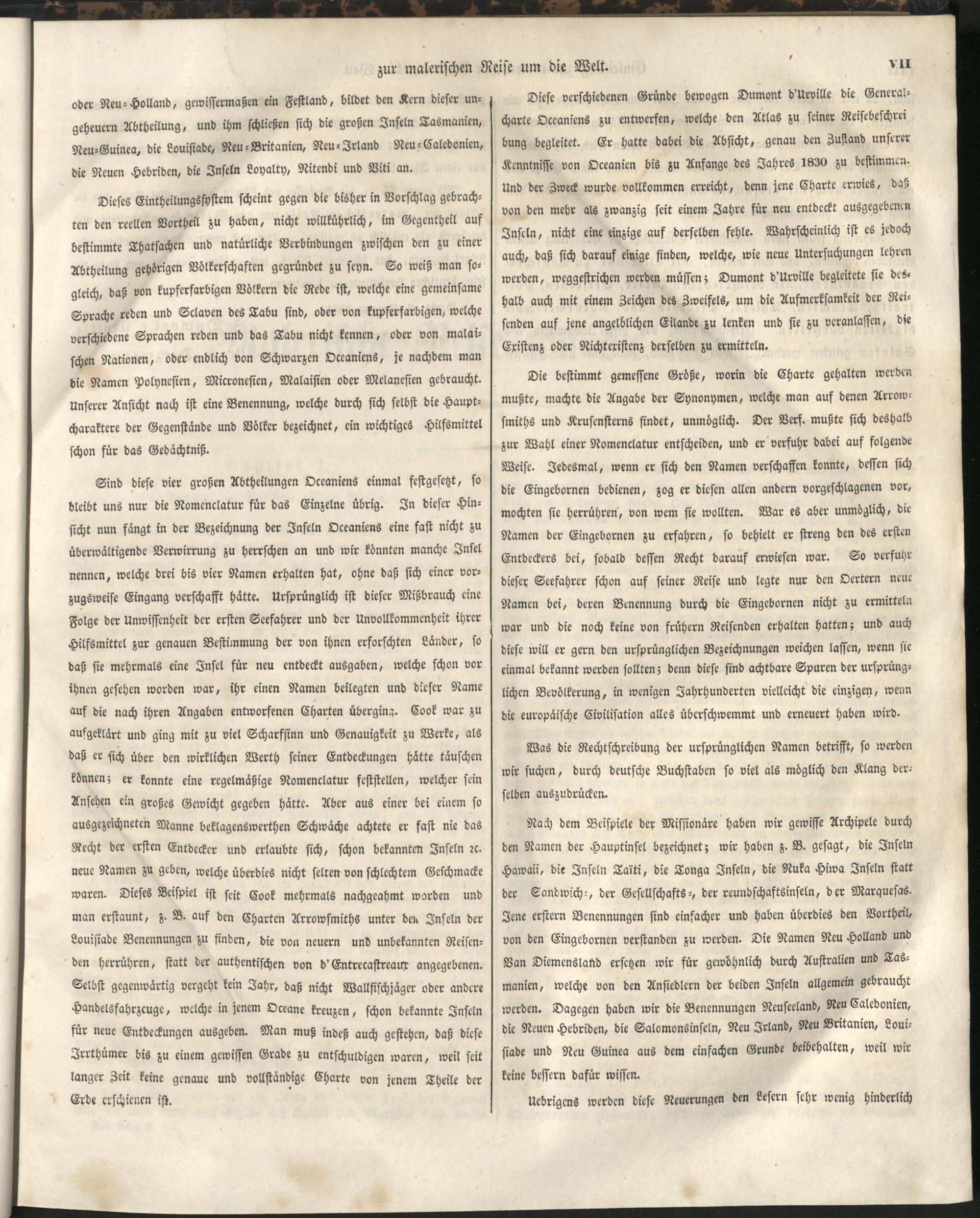 1 (1835) Malerische Reise um die Welt : Eine geordnete Zusammenstellung des Wissenswerthesten von den Entdeckungsreisen eines Magellan, Tasman, Dampier, Anson, Byron, Wallis, Carteret, Bougainville, Cook, Laperouse, Bligh, ... ; Mit Karten und 500 Abbildungen / verfaßt von einer Gesellschaft Reisender und Gelehrter unter der Leitung des Herrn Dümont d'Urville. In's Deutsche übertragen und mit einigen Anmerkungen und Zusätzen versehen von Dr. A. Diezmann