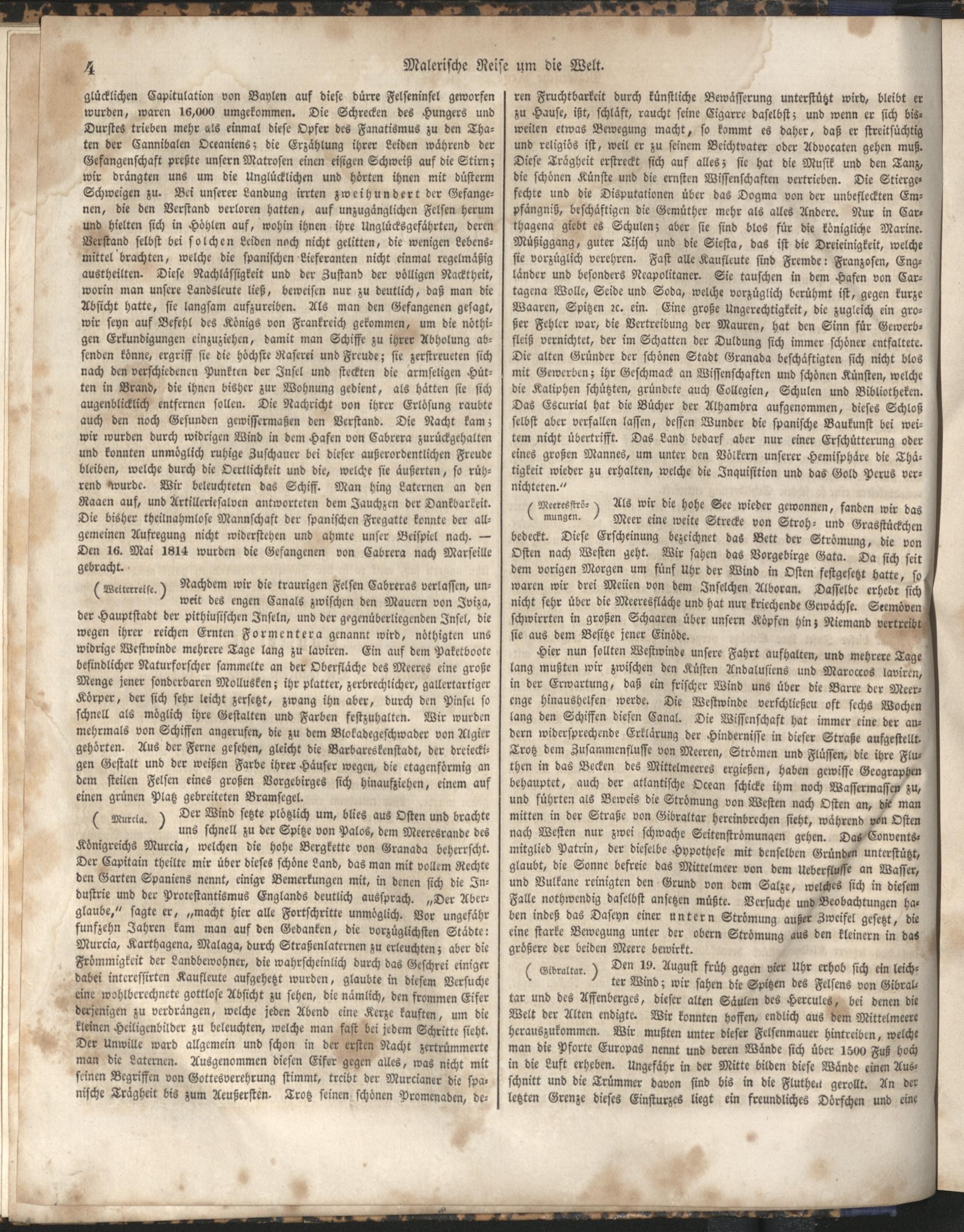 1 (1835) Malerische Reise um die Welt : Eine geordnete Zusammenstellung des Wissenswerthesten von den Entdeckungsreisen eines Magellan, Tasman, Dampier, Anson, Byron, Wallis, Carteret, Bougainville, Cook, Laperouse, Bligh, ... ; Mit Karten und 500 Abbildungen / verfaßt von einer Gesellschaft Reisender und Gelehrter unter der Leitung des Herrn Dümont d'Urville. In's Deutsche übertragen und mit einigen Anmerkungen und Zusätzen versehen von Dr. A. Diezmann