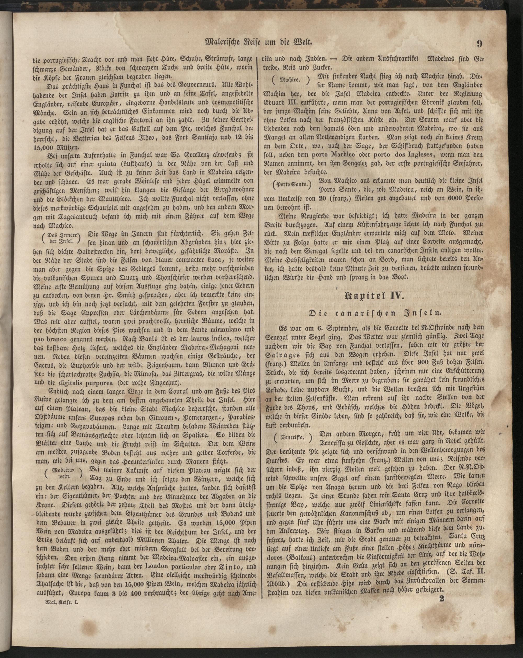 1 (1835) Malerische Reise um die Welt : Eine geordnete Zusammenstellung des Wissenswerthesten von den Entdeckungsreisen eines Magellan, Tasman, Dampier, Anson, Byron, Wallis, Carteret, Bougainville, Cook, Laperouse, Bligh, ... ; Mit Karten und 500 Abbildungen / verfaßt von einer Gesellschaft Reisender und Gelehrter unter der Leitung des Herrn Dümont d'Urville. In's Deutsche übertragen und mit einigen Anmerkungen und Zusätzen versehen von Dr. A. Diezmann