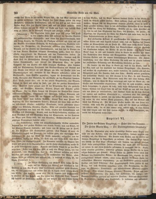 1 (1835) Malerische Reise um die Welt : Eine geordnete Zusammenstellung des Wissenswerthesten von den Entdeckungsreisen eines Magellan, Tasman, Dampier, Anson, Byron, Wallis, Carteret, Bougainville, Cook, Laperouse, Bligh, ... ; Mit Karten und 500 Abbildungen / verfaßt von einer Gesellschaft Reisender und Gelehrter unter der Leitung des Herrn Dümont d'Urville. In's Deutsche übertragen und mit einigen Anmerkungen und Zusätzen versehen von Dr. A. Diezmann