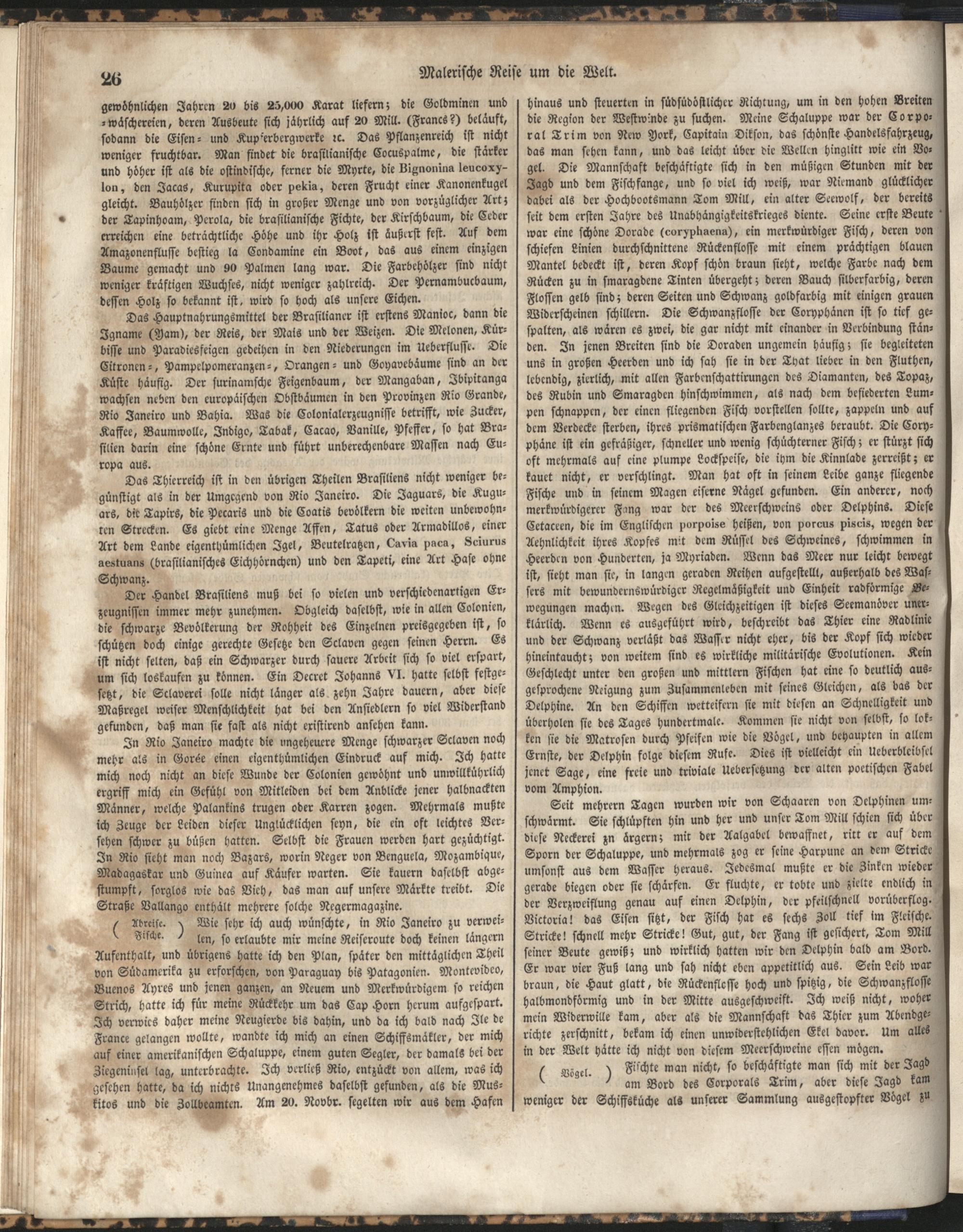 1 (1835) Malerische Reise um die Welt : Eine geordnete Zusammenstellung des Wissenswerthesten von den Entdeckungsreisen eines Magellan, Tasman, Dampier, Anson, Byron, Wallis, Carteret, Bougainville, Cook, Laperouse, Bligh, ... ; Mit Karten und 500 Abbildungen / verfaßt von einer Gesellschaft Reisender und Gelehrter unter der Leitung des Herrn Dümont d'Urville. In's Deutsche übertragen und mit einigen Anmerkungen und Zusätzen versehen von Dr. A. Diezmann