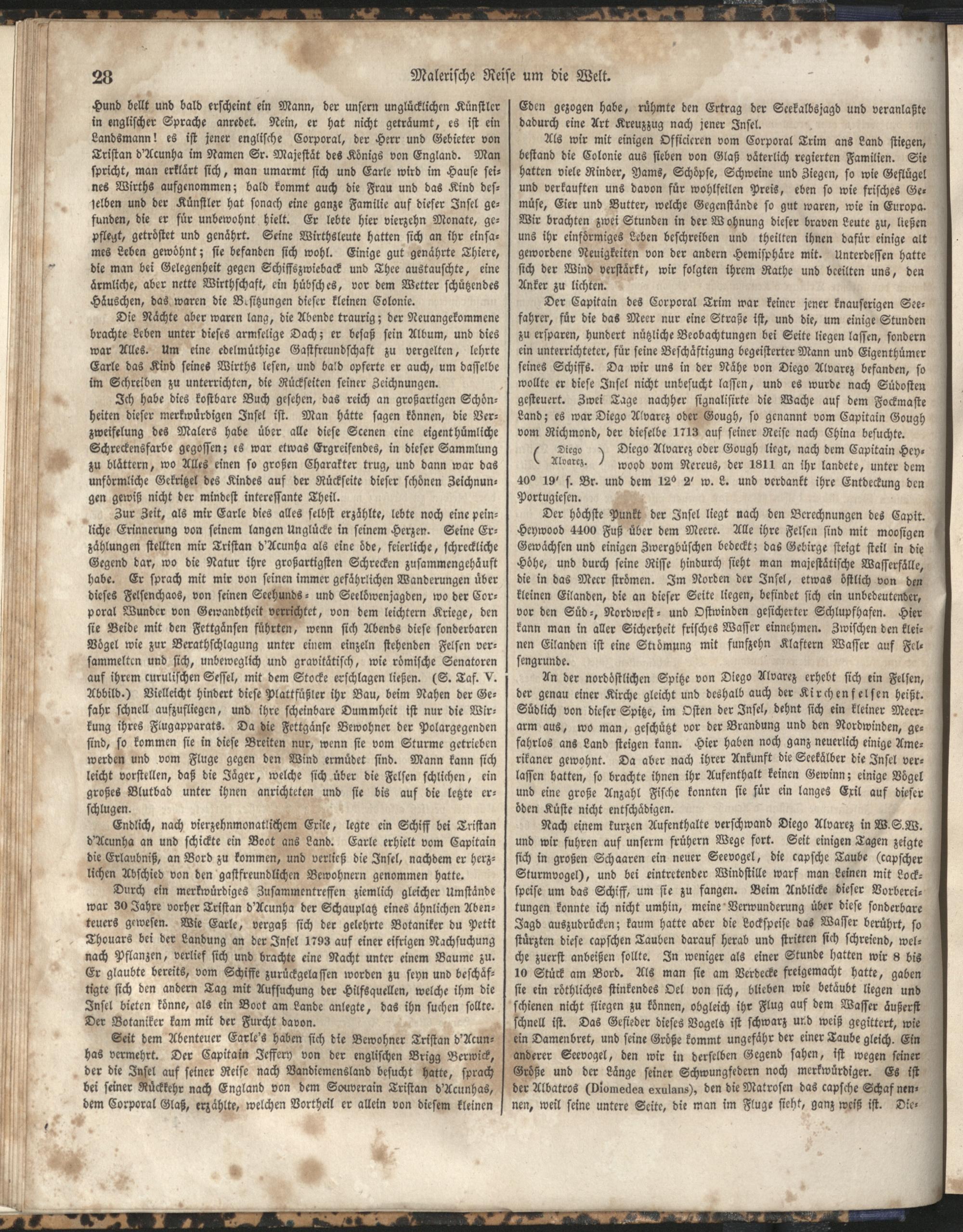 1 (1835) Malerische Reise um die Welt : Eine geordnete Zusammenstellung des Wissenswerthesten von den Entdeckungsreisen eines Magellan, Tasman, Dampier, Anson, Byron, Wallis, Carteret, Bougainville, Cook, Laperouse, Bligh, ... ; Mit Karten und 500 Abbildungen / verfaßt von einer Gesellschaft Reisender und Gelehrter unter der Leitung des Herrn Dümont d'Urville. In's Deutsche übertragen und mit einigen Anmerkungen und Zusätzen versehen von Dr. A. Diezmann