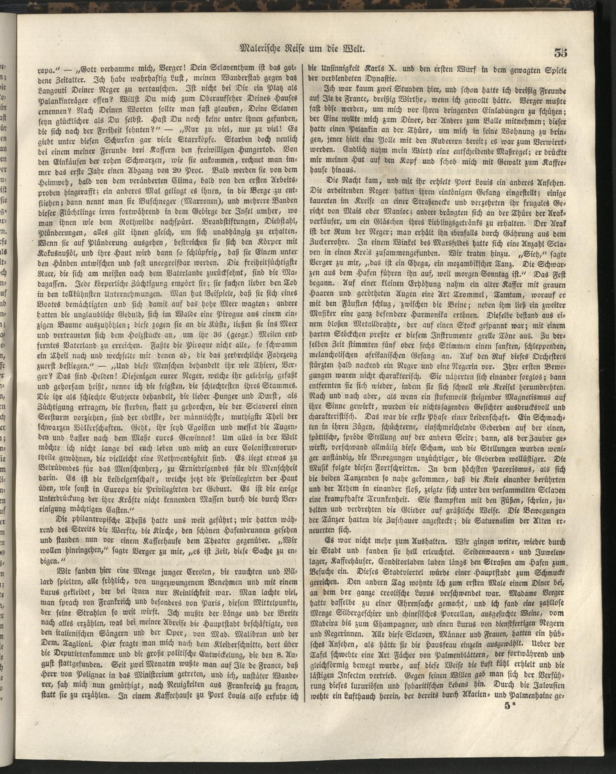 1 (1835) Malerische Reise um die Welt : Eine geordnete Zusammenstellung des Wissenswerthesten von den Entdeckungsreisen eines Magellan, Tasman, Dampier, Anson, Byron, Wallis, Carteret, Bougainville, Cook, Laperouse, Bligh, ... ; Mit Karten und 500 Abbildungen / verfaßt von einer Gesellschaft Reisender und Gelehrter unter der Leitung des Herrn Dümont d'Urville. In's Deutsche übertragen und mit einigen Anmerkungen und Zusätzen versehen von Dr. A. Diezmann