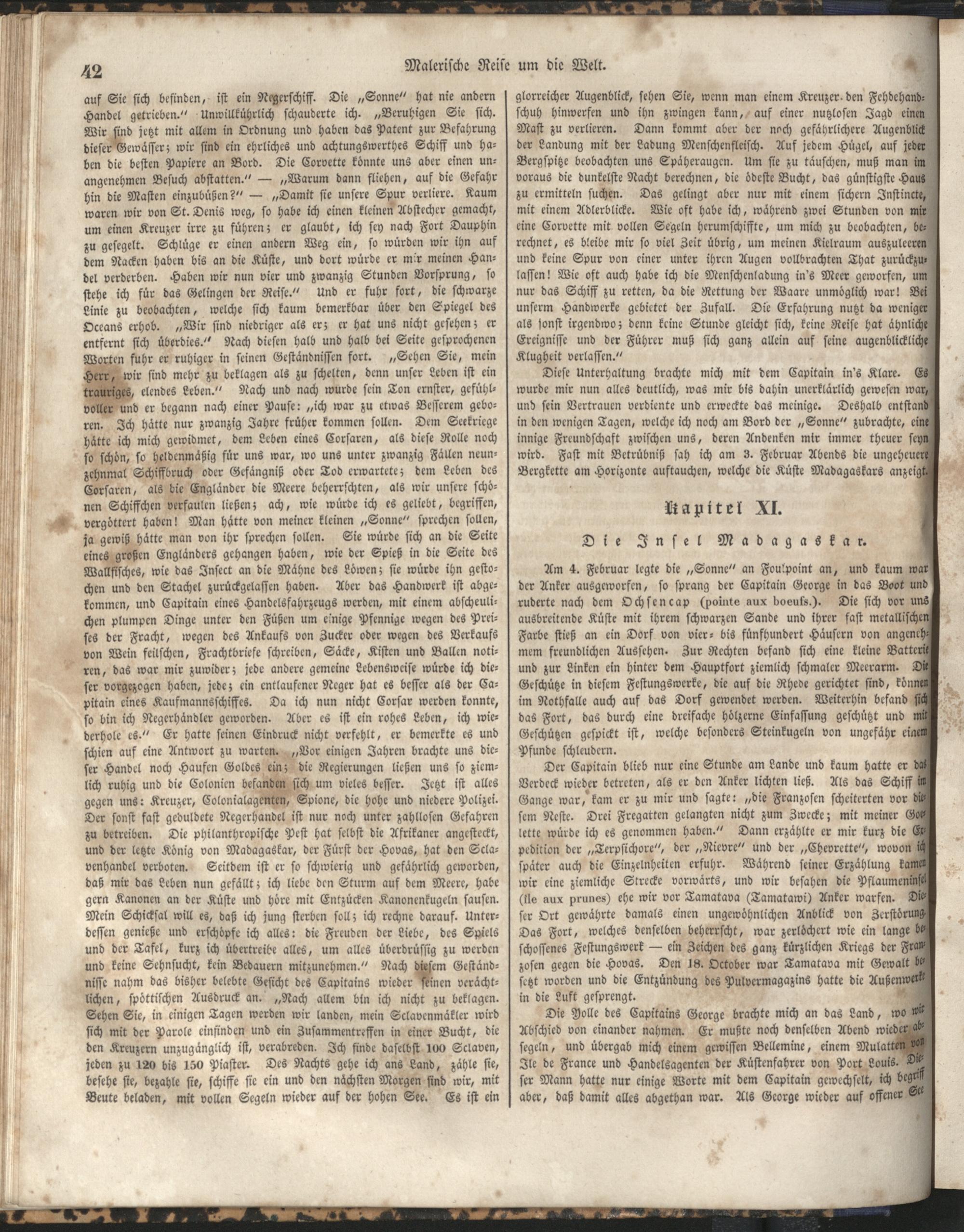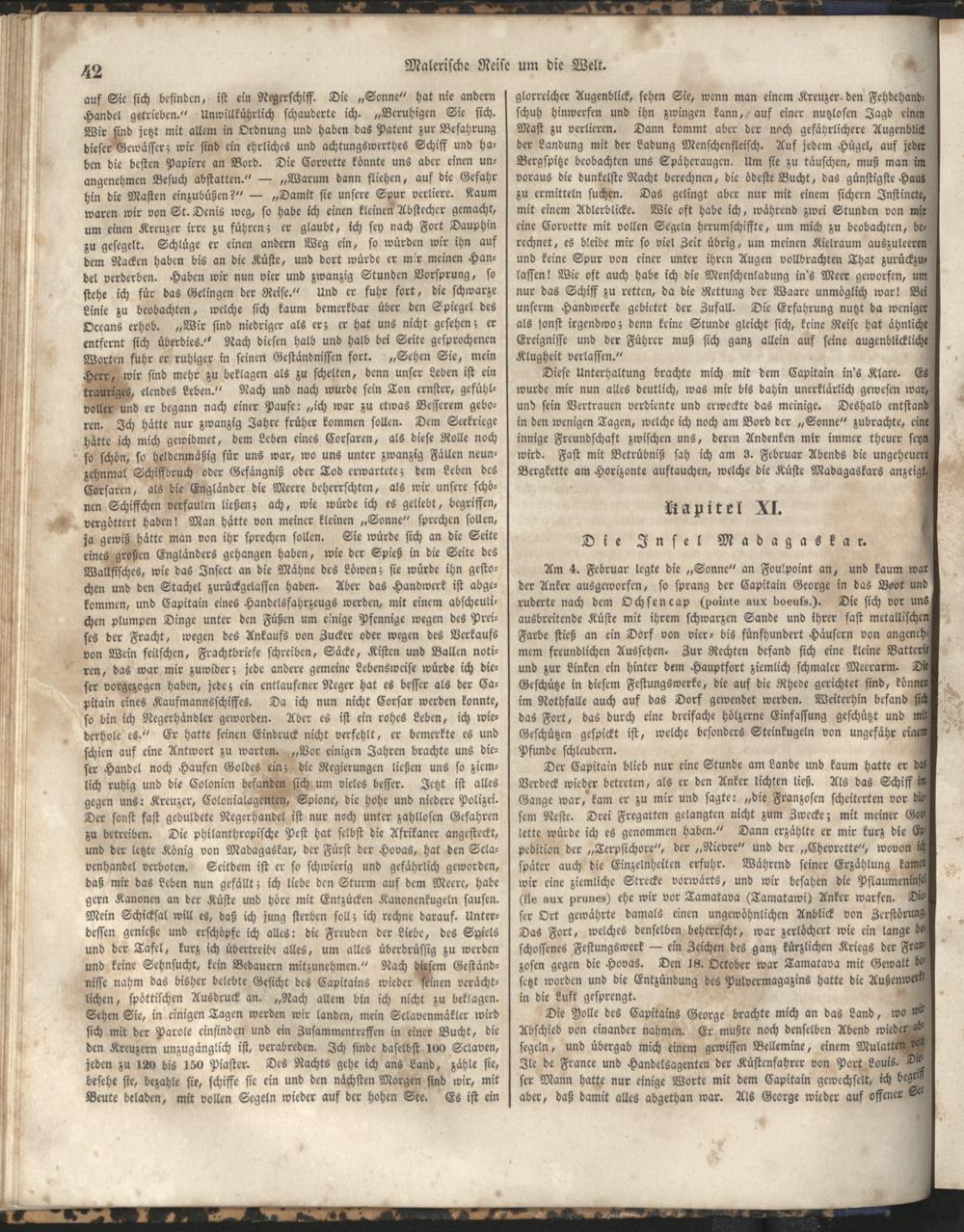 1 (1835) Malerische Reise um die Welt : Eine geordnete Zusammenstellung des Wissenswerthesten von den Entdeckungsreisen eines Magellan, Tasman, Dampier, Anson, Byron, Wallis, Carteret, Bougainville, Cook, Laperouse, Bligh, ... ; Mit Karten und 500 Abbildungen / verfaßt von einer Gesellschaft Reisender und Gelehrter unter der Leitung des Herrn Dümont d'Urville. In's Deutsche übertragen und mit einigen Anmerkungen und Zusätzen versehen von Dr. A. Diezmann