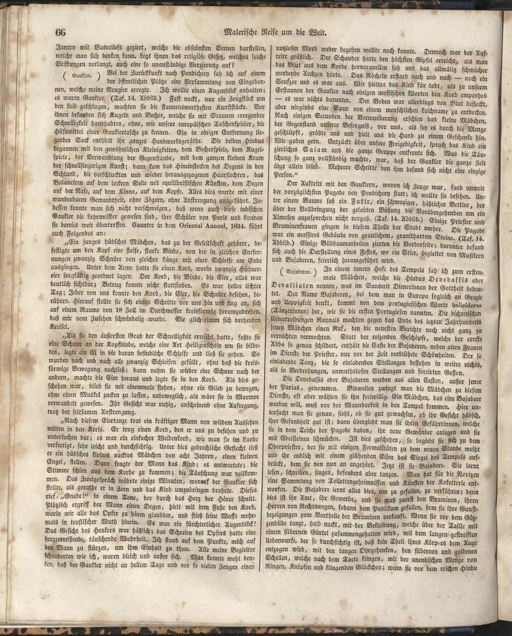 1 (1835) Malerische Reise um die Welt : Eine geordnete Zusammenstellung des Wissenswerthesten von den Entdeckungsreisen eines Magellan, Tasman, Dampier, Anson, Byron, Wallis, Carteret, Bougainville, Cook, Laperouse, Bligh, ... ; Mit Karten und 500 Abbildungen / verfaßt von einer Gesellschaft Reisender und Gelehrter unter der Leitung des Herrn Dümont d'Urville. In's Deutsche übertragen und mit einigen Anmerkungen und Zusätzen versehen von Dr. A. Diezmann