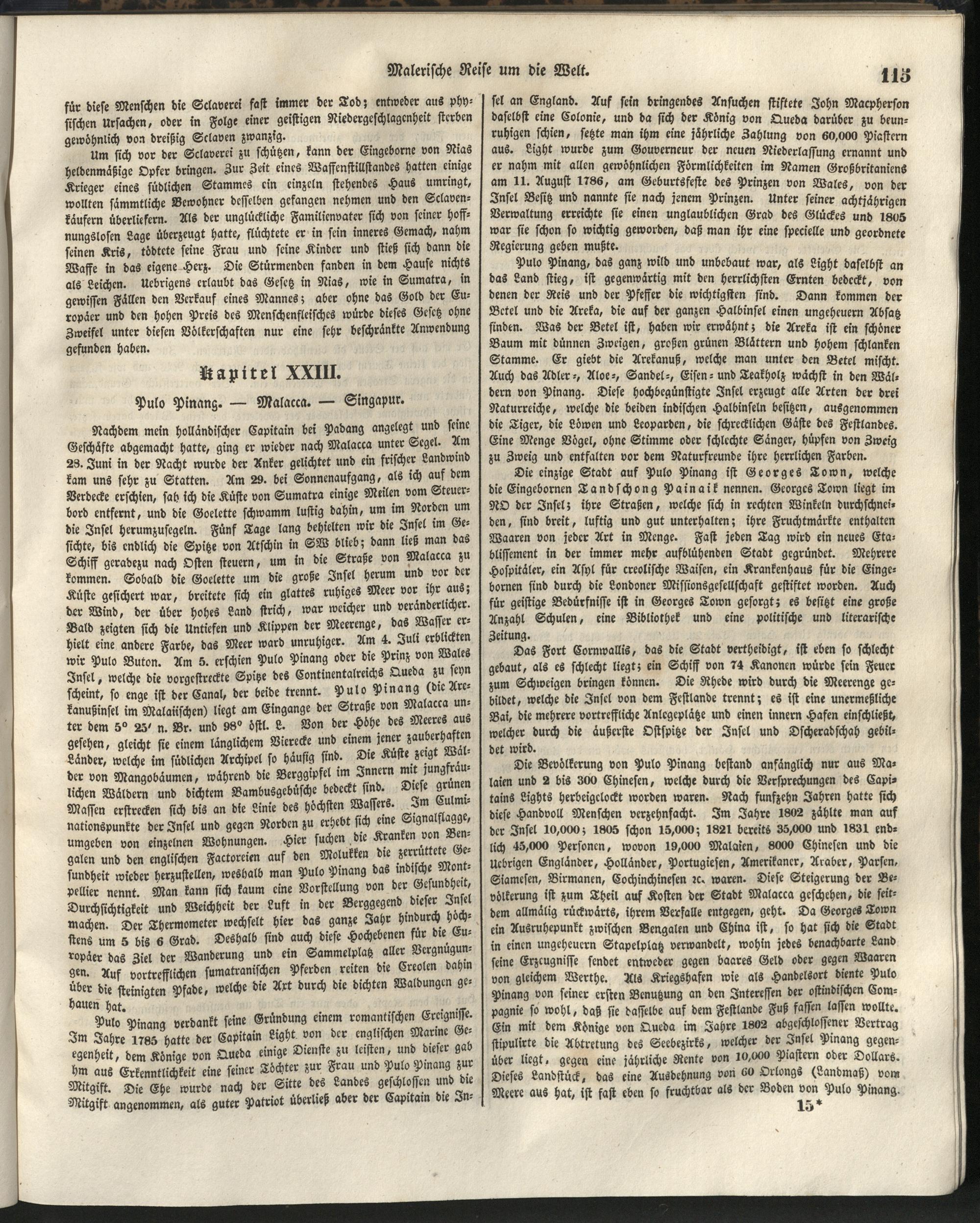 1 (1835) Malerische Reise um die Welt : Eine geordnete Zusammenstellung des Wissenswerthesten von den Entdeckungsreisen eines Magellan, Tasman, Dampier, Anson, Byron, Wallis, Carteret, Bougainville, Cook, Laperouse, Bligh, ... ; Mit Karten und 500 Abbildungen / verfaßt von einer Gesellschaft Reisender und Gelehrter unter der Leitung des Herrn Dümont d'Urville. In's Deutsche übertragen und mit einigen Anmerkungen und Zusätzen versehen von Dr. A. Diezmann