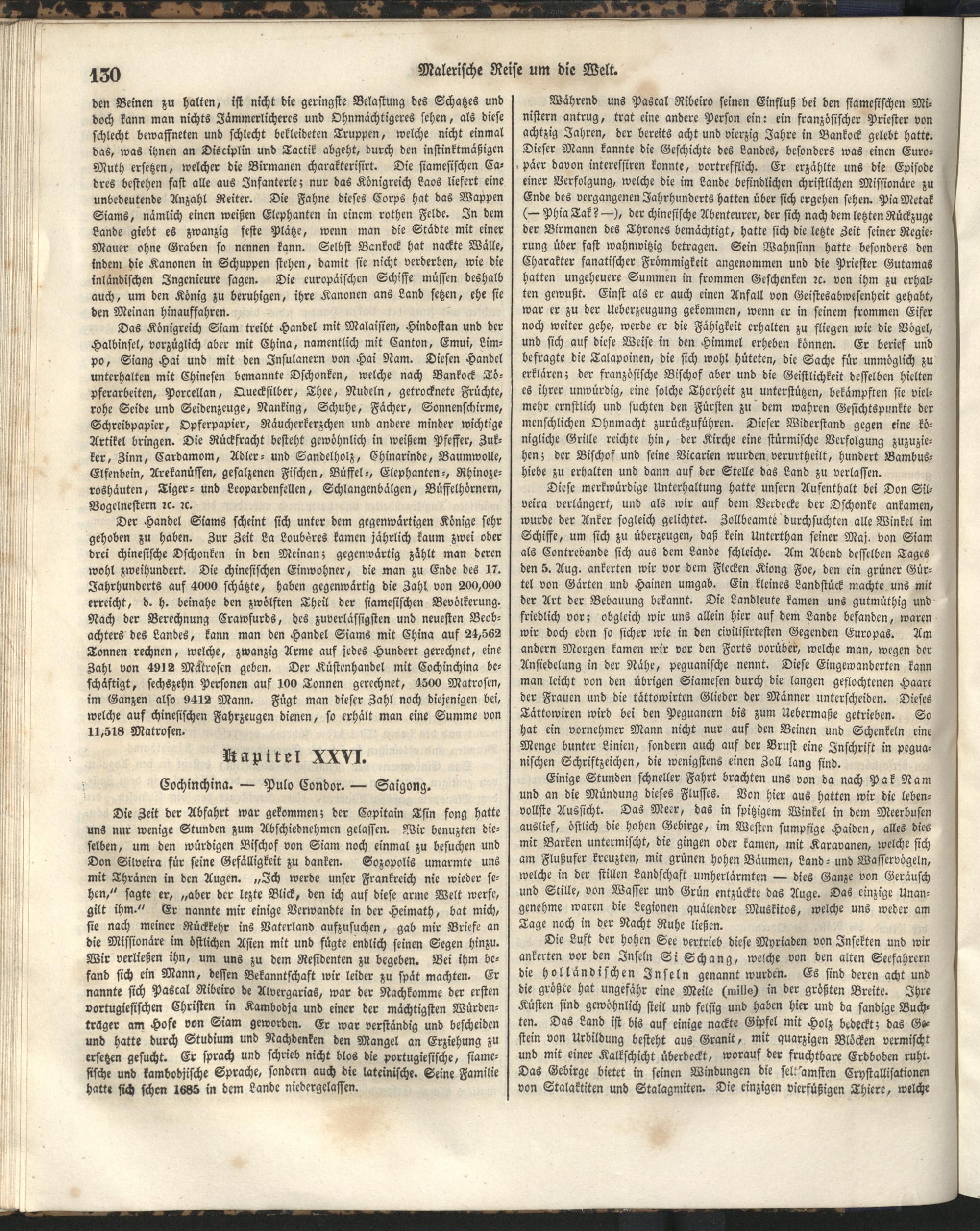 1 (1835) Malerische Reise um die Welt : Eine geordnete Zusammenstellung des Wissenswerthesten von den Entdeckungsreisen eines Magellan, Tasman, Dampier, Anson, Byron, Wallis, Carteret, Bougainville, Cook, Laperouse, Bligh, ... ; Mit Karten und 500 Abbildungen / verfaßt von einer Gesellschaft Reisender und Gelehrter unter der Leitung des Herrn Dümont d'Urville. In's Deutsche übertragen und mit einigen Anmerkungen und Zusätzen versehen von Dr. A. Diezmann