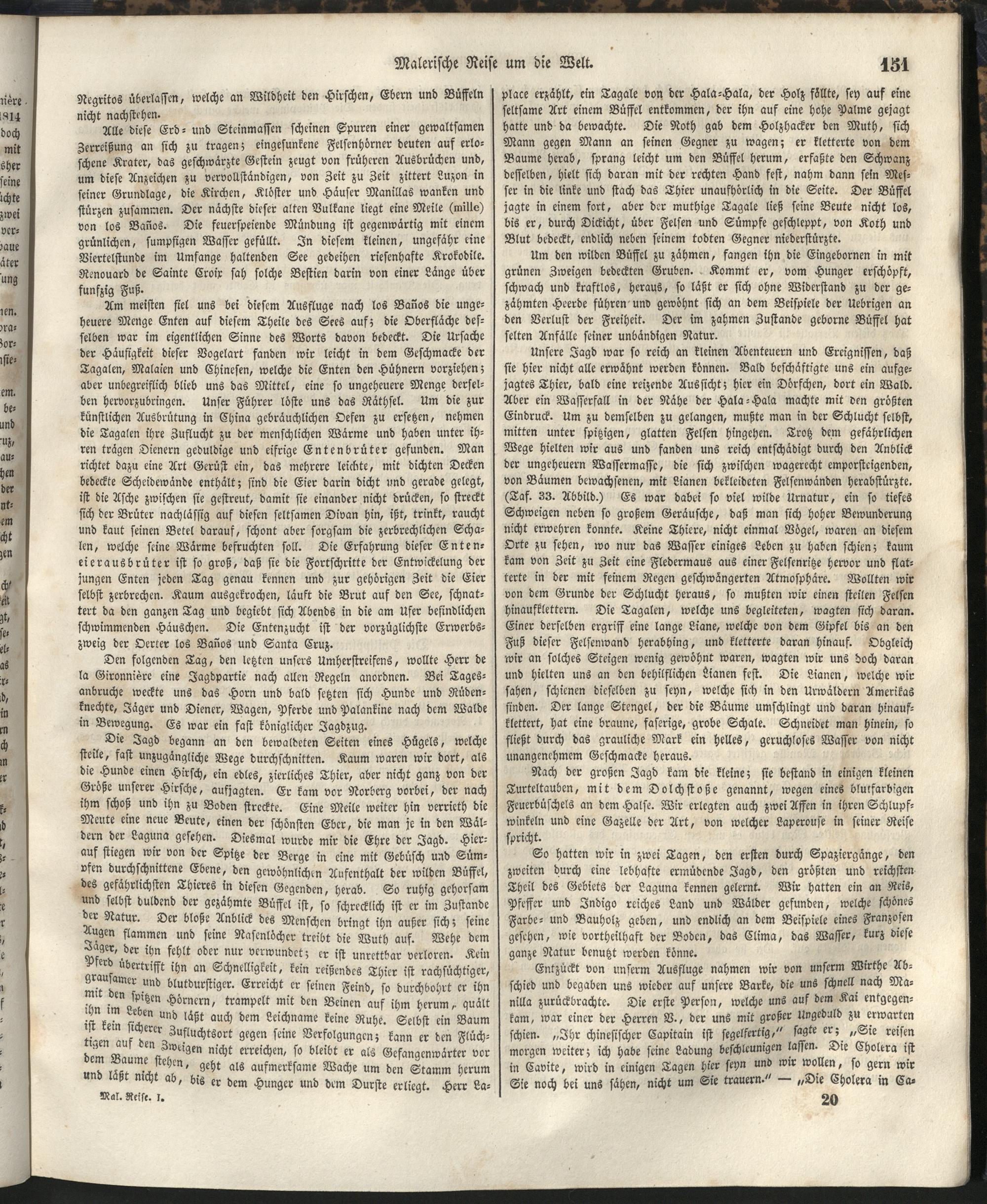 1 (1835) Malerische Reise um die Welt : Eine geordnete Zusammenstellung des Wissenswerthesten von den Entdeckungsreisen eines Magellan, Tasman, Dampier, Anson, Byron, Wallis, Carteret, Bougainville, Cook, Laperouse, Bligh, ... ; Mit Karten und 500 Abbildungen / verfaßt von einer Gesellschaft Reisender und Gelehrter unter der Leitung des Herrn Dümont d'Urville. In's Deutsche übertragen und mit einigen Anmerkungen und Zusätzen versehen von Dr. A. Diezmann