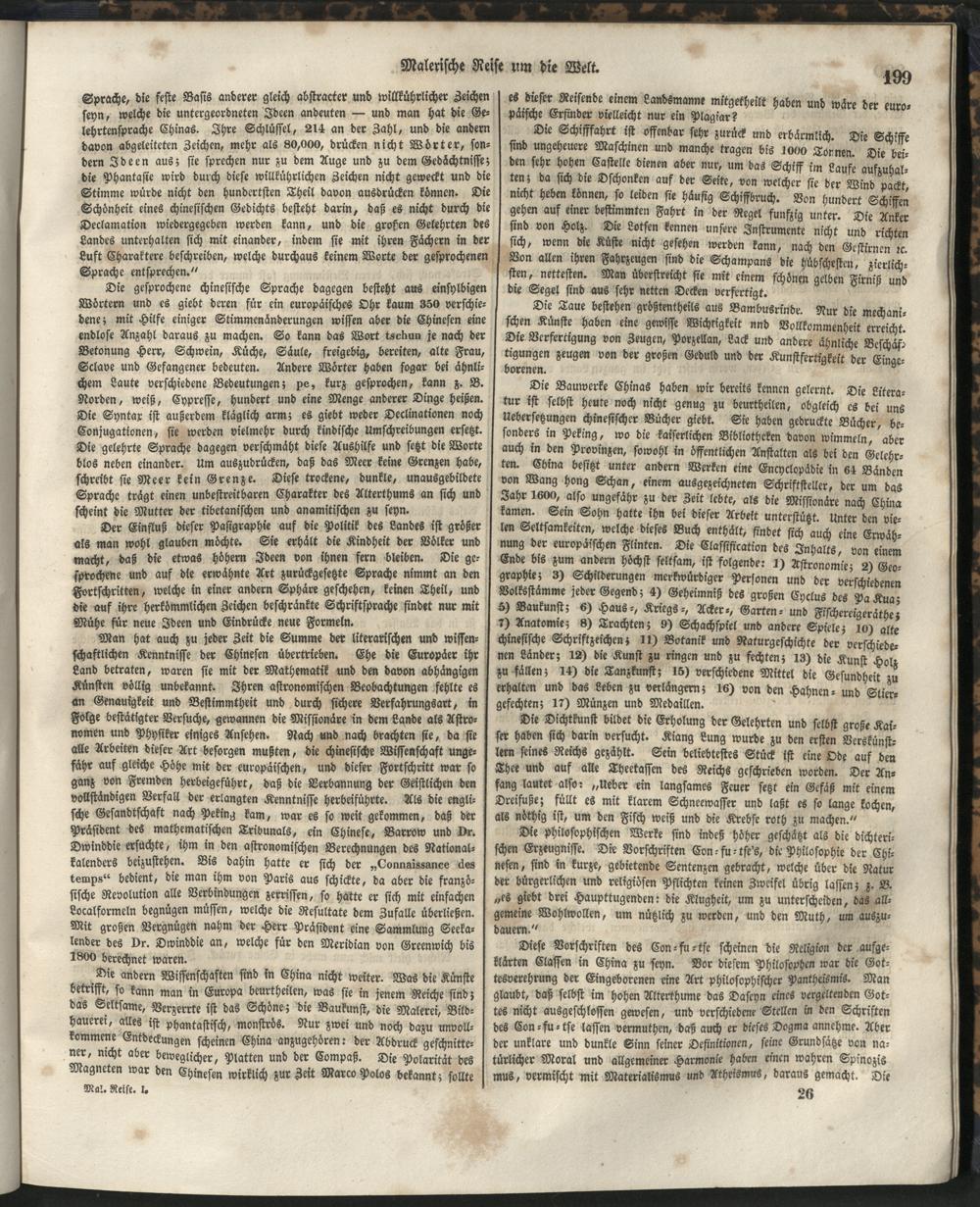 1 (1835) Malerische Reise um die Welt : Eine geordnete Zusammenstellung des Wissenswerthesten von den Entdeckungsreisen eines Magellan, Tasman, Dampier, Anson, Byron, Wallis, Carteret, Bougainville, Cook, Laperouse, Bligh, ... ; Mit Karten und 500 Abbildungen / verfaßt von einer Gesellschaft Reisender und Gelehrter unter der Leitung des Herrn Dümont d'Urville. In's Deutsche übertragen und mit einigen Anmerkungen und Zusätzen versehen von Dr. A. Diezmann