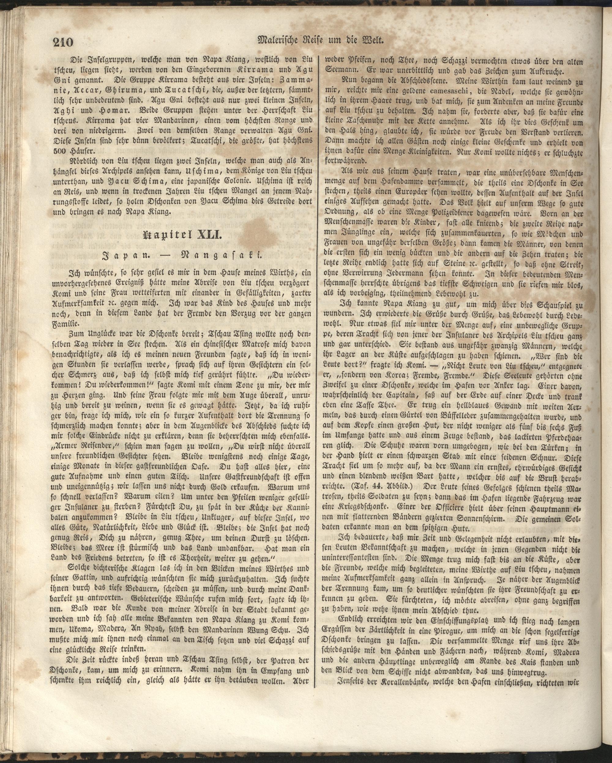 1 (1835) Malerische Reise um die Welt : Eine geordnete Zusammenstellung des Wissenswerthesten von den Entdeckungsreisen eines Magellan, Tasman, Dampier, Anson, Byron, Wallis, Carteret, Bougainville, Cook, Laperouse, Bligh, ... ; Mit Karten und 500 Abbildungen / verfaßt von einer Gesellschaft Reisender und Gelehrter unter der Leitung des Herrn Dümont d'Urville. In's Deutsche übertragen und mit einigen Anmerkungen und Zusätzen versehen von Dr. A. Diezmann