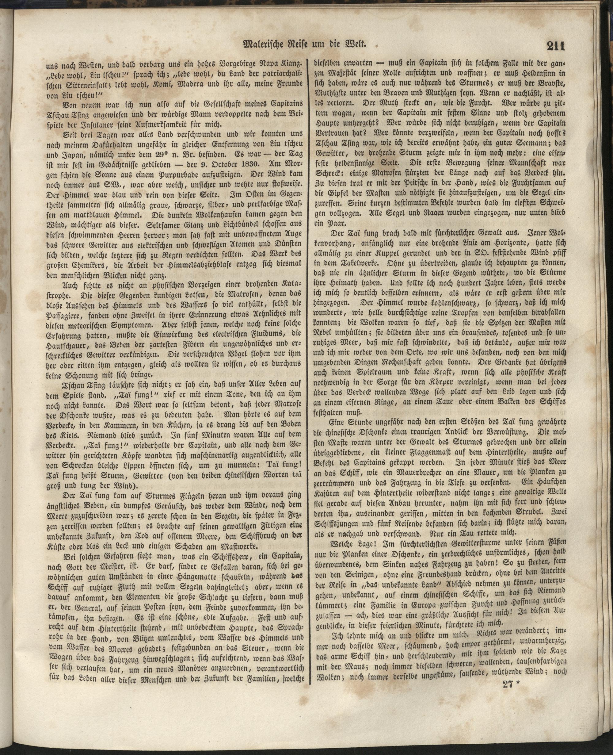 1 (1835) Malerische Reise um die Welt : Eine geordnete Zusammenstellung des Wissenswerthesten von den Entdeckungsreisen eines Magellan, Tasman, Dampier, Anson, Byron, Wallis, Carteret, Bougainville, Cook, Laperouse, Bligh, ... ; Mit Karten und 500 Abbildungen / verfaßt von einer Gesellschaft Reisender und Gelehrter unter der Leitung des Herrn Dümont d'Urville. In's Deutsche übertragen und mit einigen Anmerkungen und Zusätzen versehen von Dr. A. Diezmann