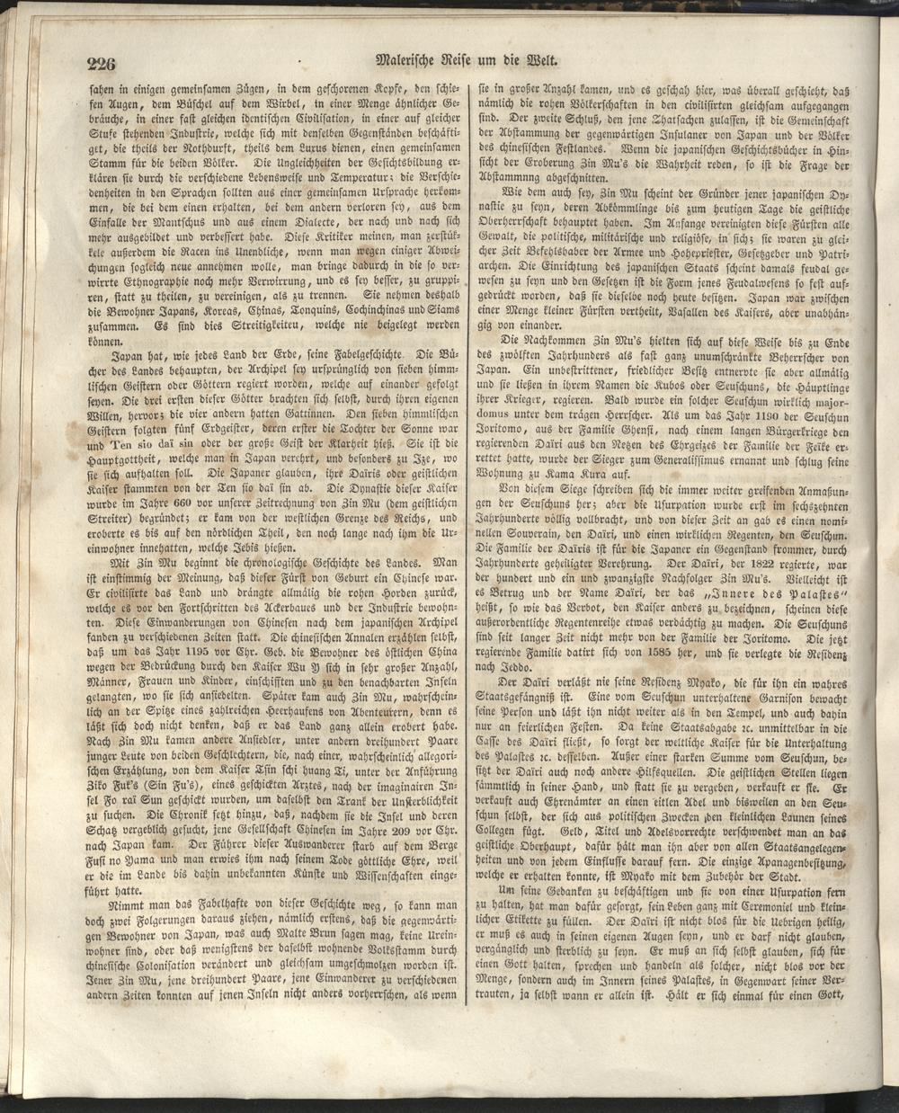 1 (1835) Malerische Reise um die Welt : Eine geordnete Zusammenstellung des Wissenswerthesten von den Entdeckungsreisen eines Magellan, Tasman, Dampier, Anson, Byron, Wallis, Carteret, Bougainville, Cook, Laperouse, Bligh, ... ; Mit Karten und 500 Abbildungen / verfaßt von einer Gesellschaft Reisender und Gelehrter unter der Leitung des Herrn Dümont d'Urville. In's Deutsche übertragen und mit einigen Anmerkungen und Zusätzen versehen von Dr. A. Diezmann