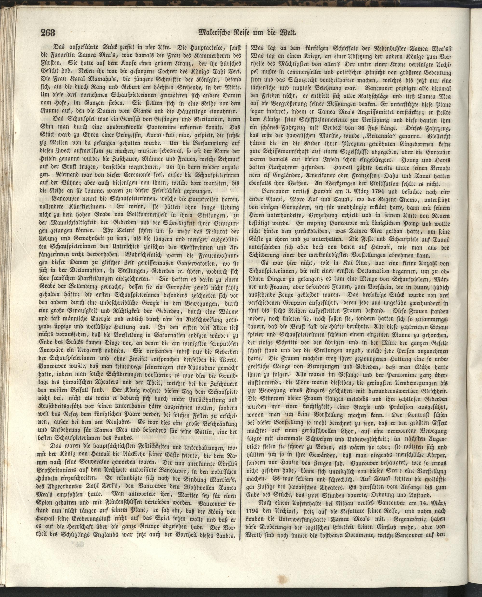 1 (1835) Malerische Reise um die Welt : Eine geordnete Zusammenstellung des Wissenswerthesten von den Entdeckungsreisen eines Magellan, Tasman, Dampier, Anson, Byron, Wallis, Carteret, Bougainville, Cook, Laperouse, Bligh, ... ; Mit Karten und 500 Abbildungen / verfaßt von einer Gesellschaft Reisender und Gelehrter unter der Leitung des Herrn Dümont d'Urville. In's Deutsche übertragen und mit einigen Anmerkungen und Zusätzen versehen von Dr. A. Diezmann