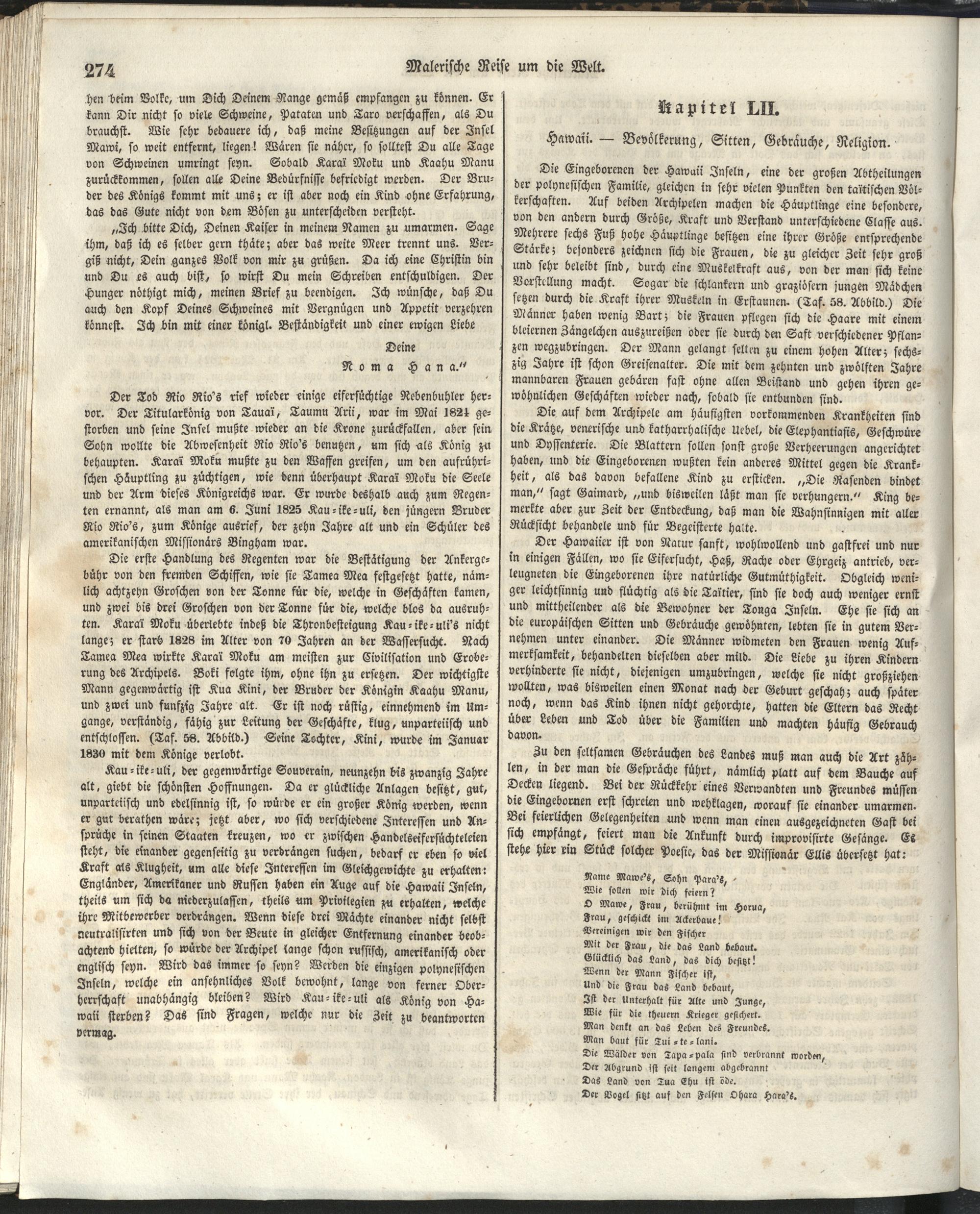 1 (1835) Malerische Reise um die Welt : Eine geordnete Zusammenstellung des Wissenswerthesten von den Entdeckungsreisen eines Magellan, Tasman, Dampier, Anson, Byron, Wallis, Carteret, Bougainville, Cook, Laperouse, Bligh, ... ; Mit Karten und 500 Abbildungen / verfaßt von einer Gesellschaft Reisender und Gelehrter unter der Leitung des Herrn Dümont d'Urville. In's Deutsche übertragen und mit einigen Anmerkungen und Zusätzen versehen von Dr. A. Diezmann