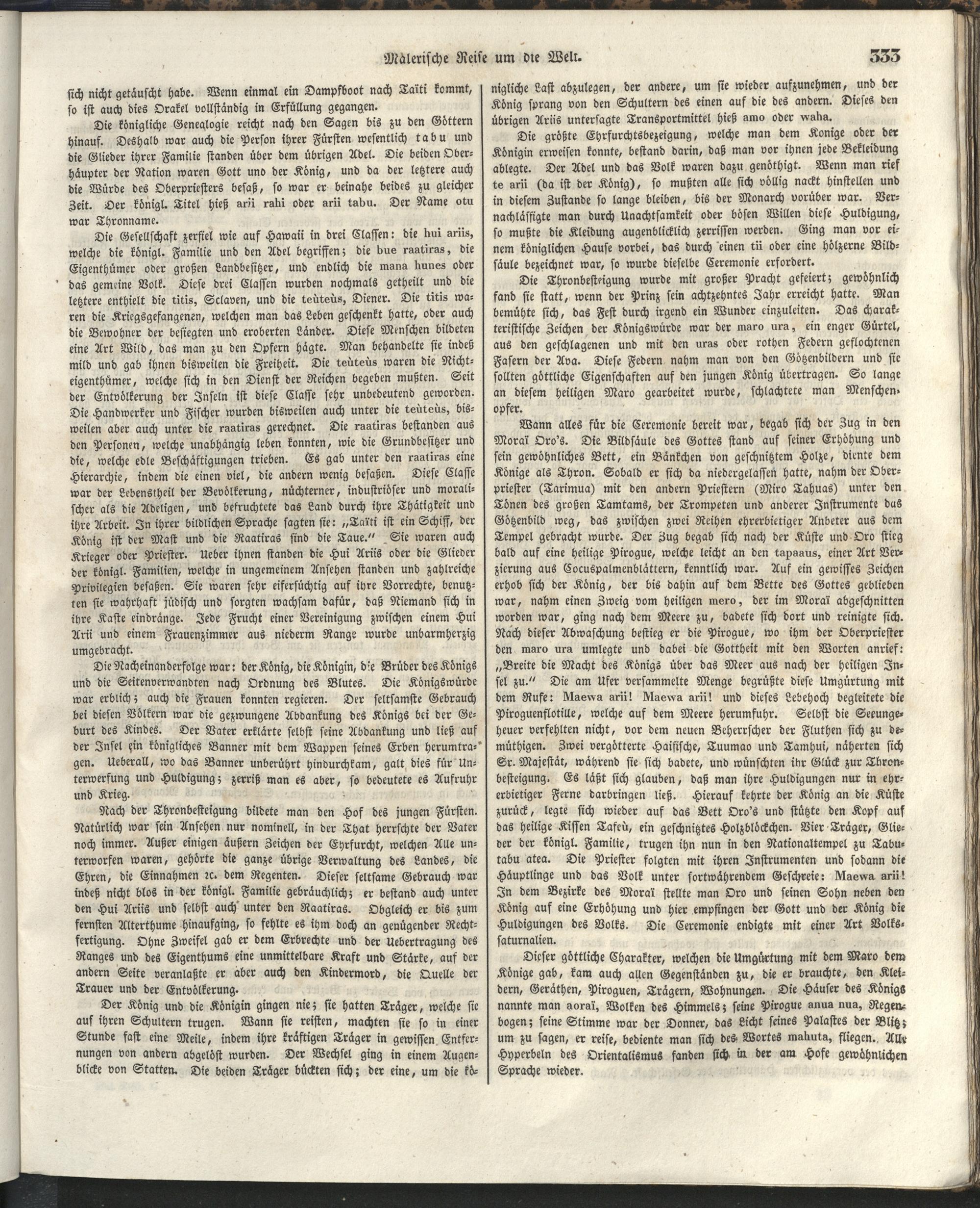1 (1835) Malerische Reise um die Welt : Eine geordnete Zusammenstellung des Wissenswerthesten von den Entdeckungsreisen eines Magellan, Tasman, Dampier, Anson, Byron, Wallis, Carteret, Bougainville, Cook, Laperouse, Bligh, ... ; Mit Karten und 500 Abbildungen / verfaßt von einer Gesellschaft Reisender und Gelehrter unter der Leitung des Herrn Dümont d'Urville. In's Deutsche übertragen und mit einigen Anmerkungen und Zusätzen versehen von Dr. A. Diezmann