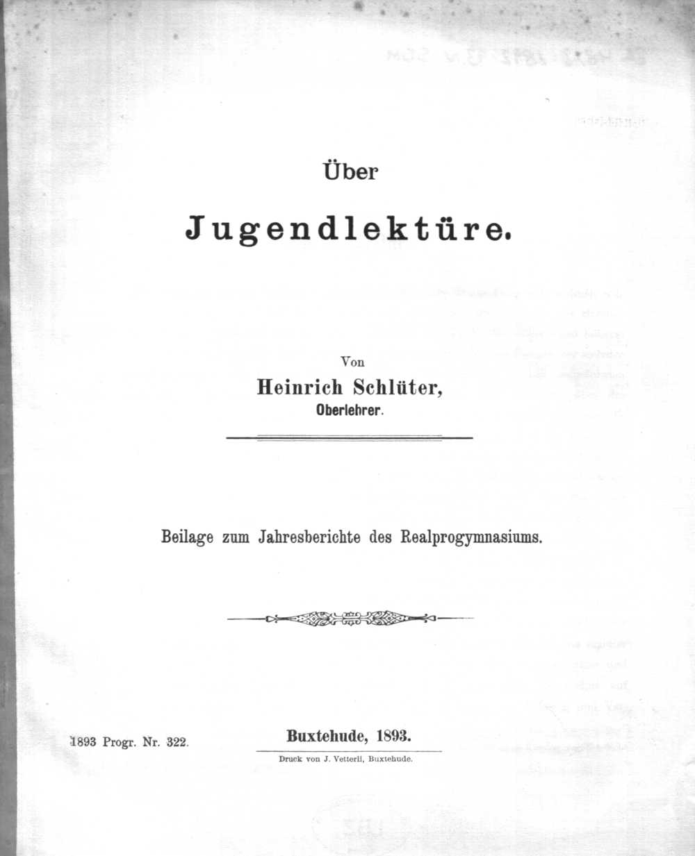 Über Jugendlektüre / von Heinrich Schlüter