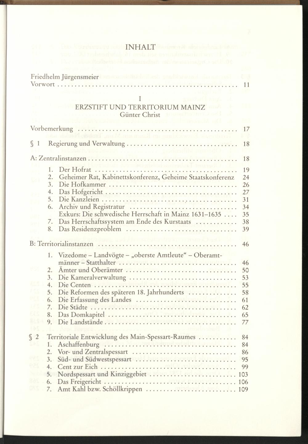 2 (1997) Erzstift und Erzbistum Mainz : territoriale und kirchliche Strukturen / von Günter Christ ... / hrsg. von Friedhelm Jürgensmeier