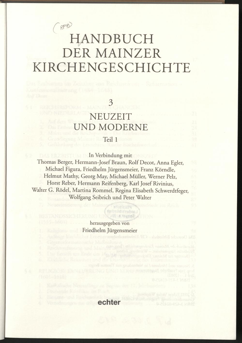 3,1 (2002) Handbuch der Mainzer Kirchengeschichte / hrsg. von Friedhelm Jürgensmeier