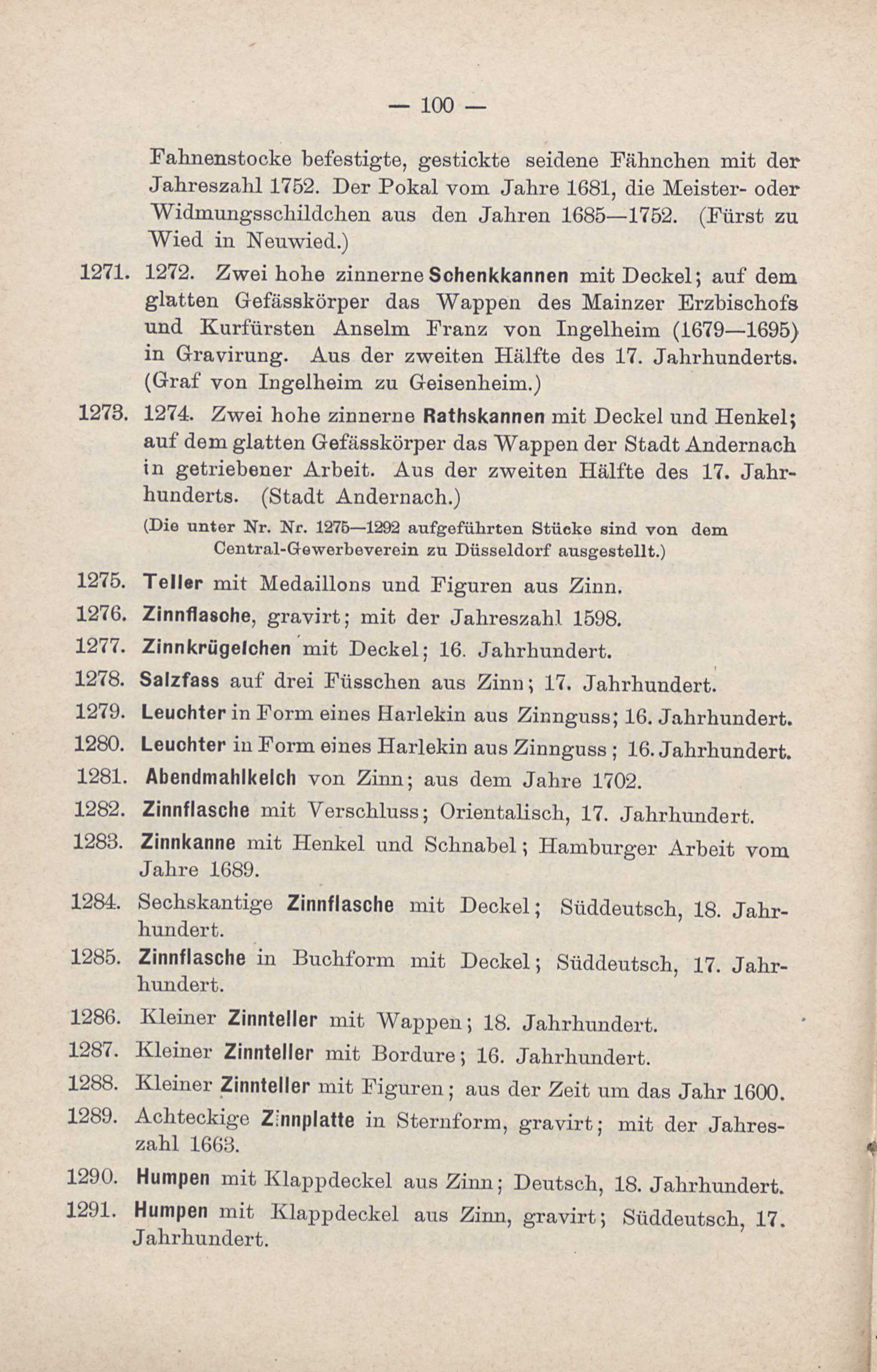 Verzeichniss der Ausstellung von Kunstgewerblichen Alterthümern, Kunstgegenständen und Gemälden in Coblenz 1891 / hrsg. von dem Ausschuss
