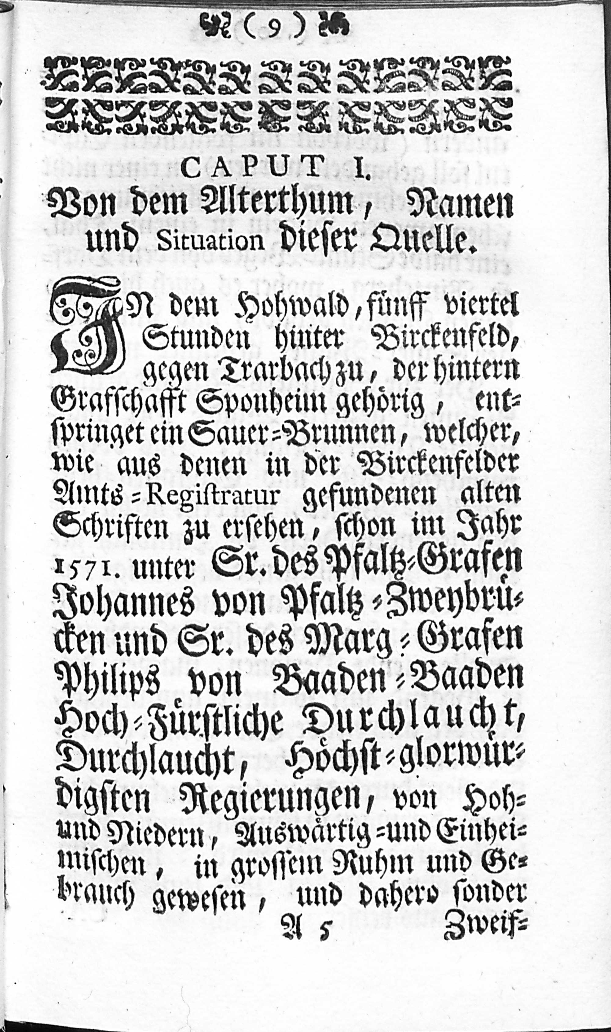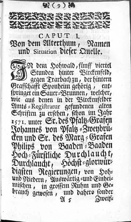 1 (1744) Bericht, von dem bey Birckenfeld befindlich- Mineralischen Heil- und Gesund-Brunnen, Worinnen zugleich desselben bisher noch nie Entdeckte Contenta nebst denen Vortrefflichen Tugenden und Gebrauch im Trincken und Baden, Zum Nutzen und Vortheil derer Krancken kürtzlich doch ausführlich beschrieben worden / von J. F. Ravenstein, Med. Doctor und des Ober-Amts Lichtenberg Physico