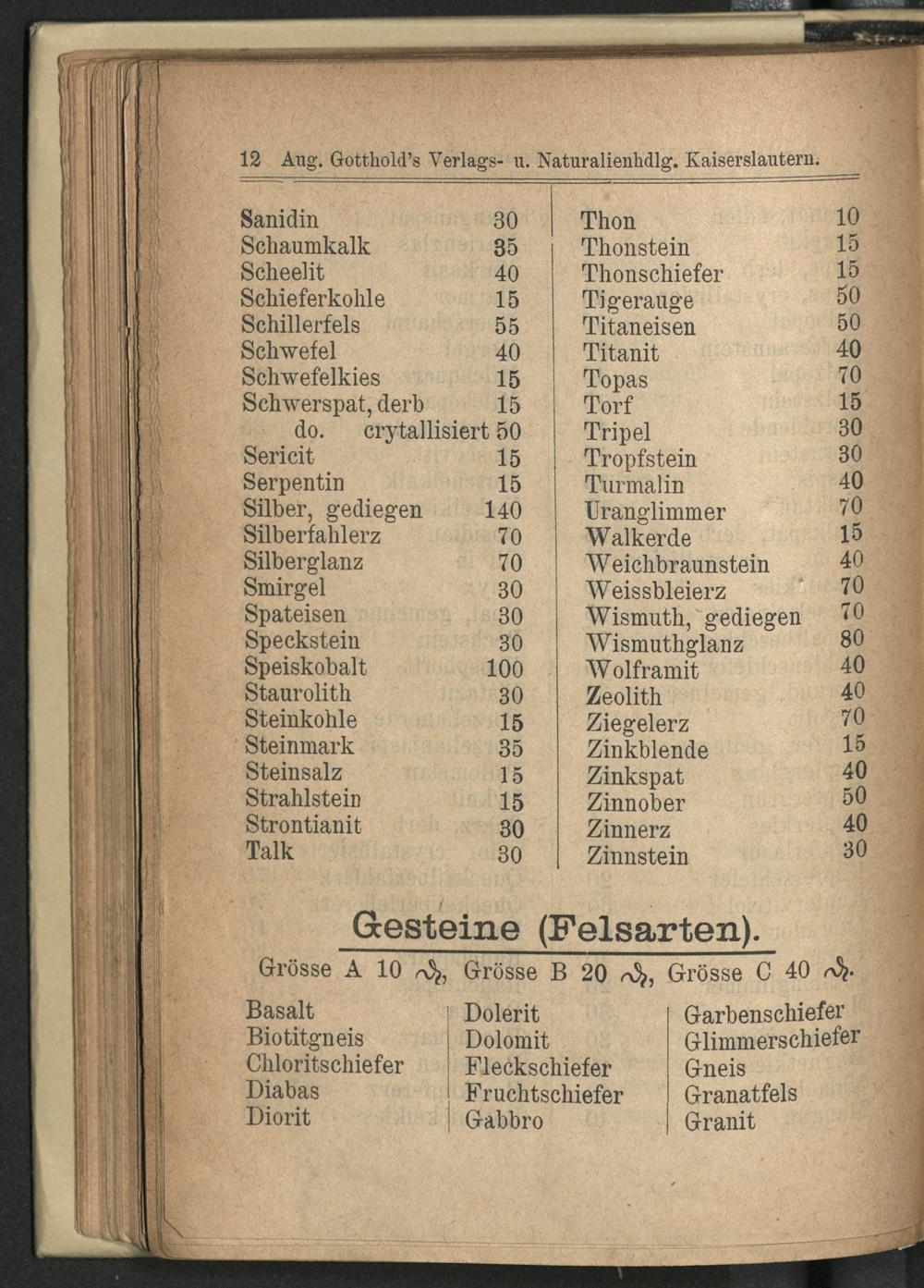 Preis-Verzeichniss [...]