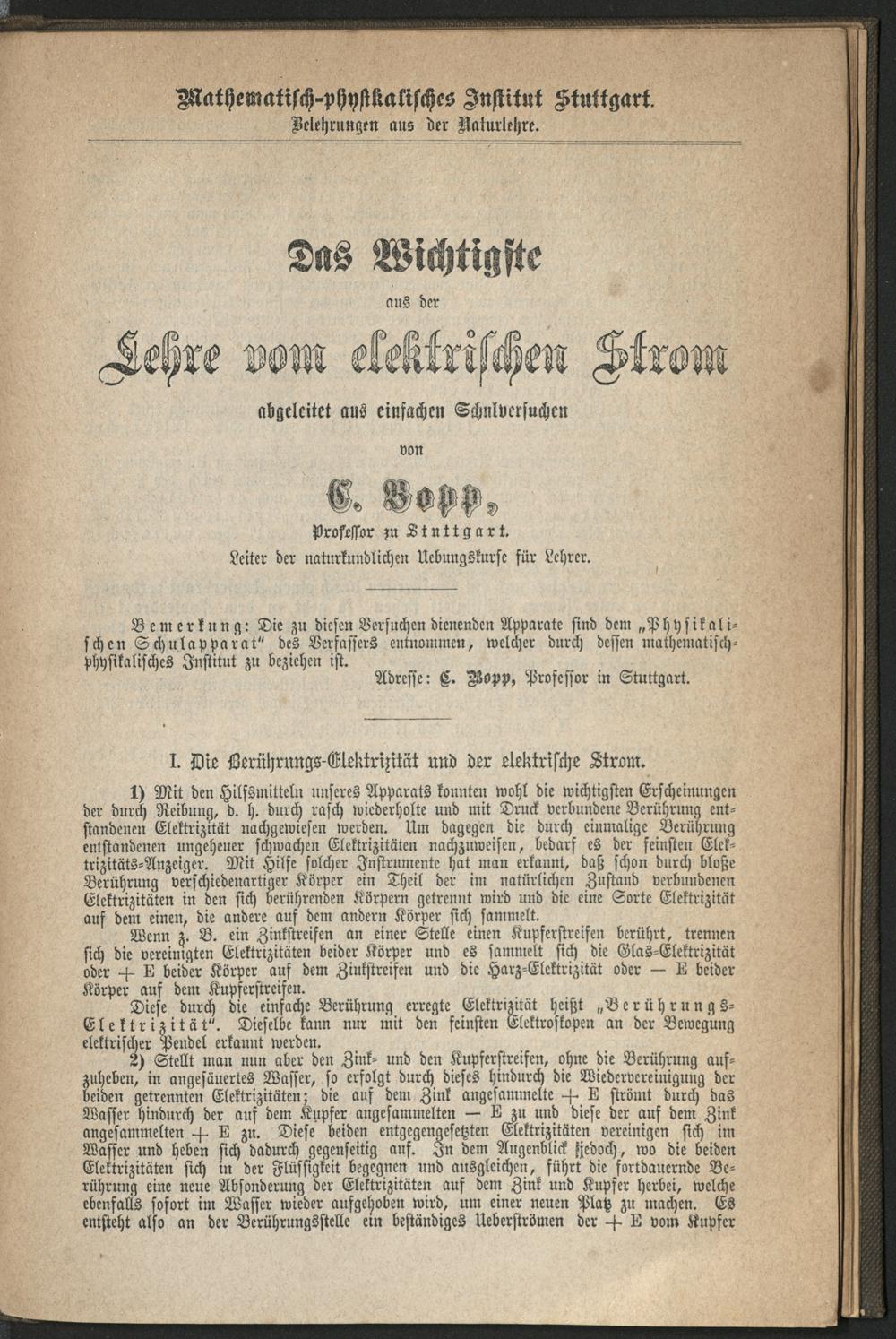 Gemeinfassliche Belehrungen aus der Naturlehre : abgeleitet aus einfachen Schul-Versuchen ; Beigabe zum Physikalischen Normal-Apparat für die Pfälzer Volksschulen / von C. Bopp