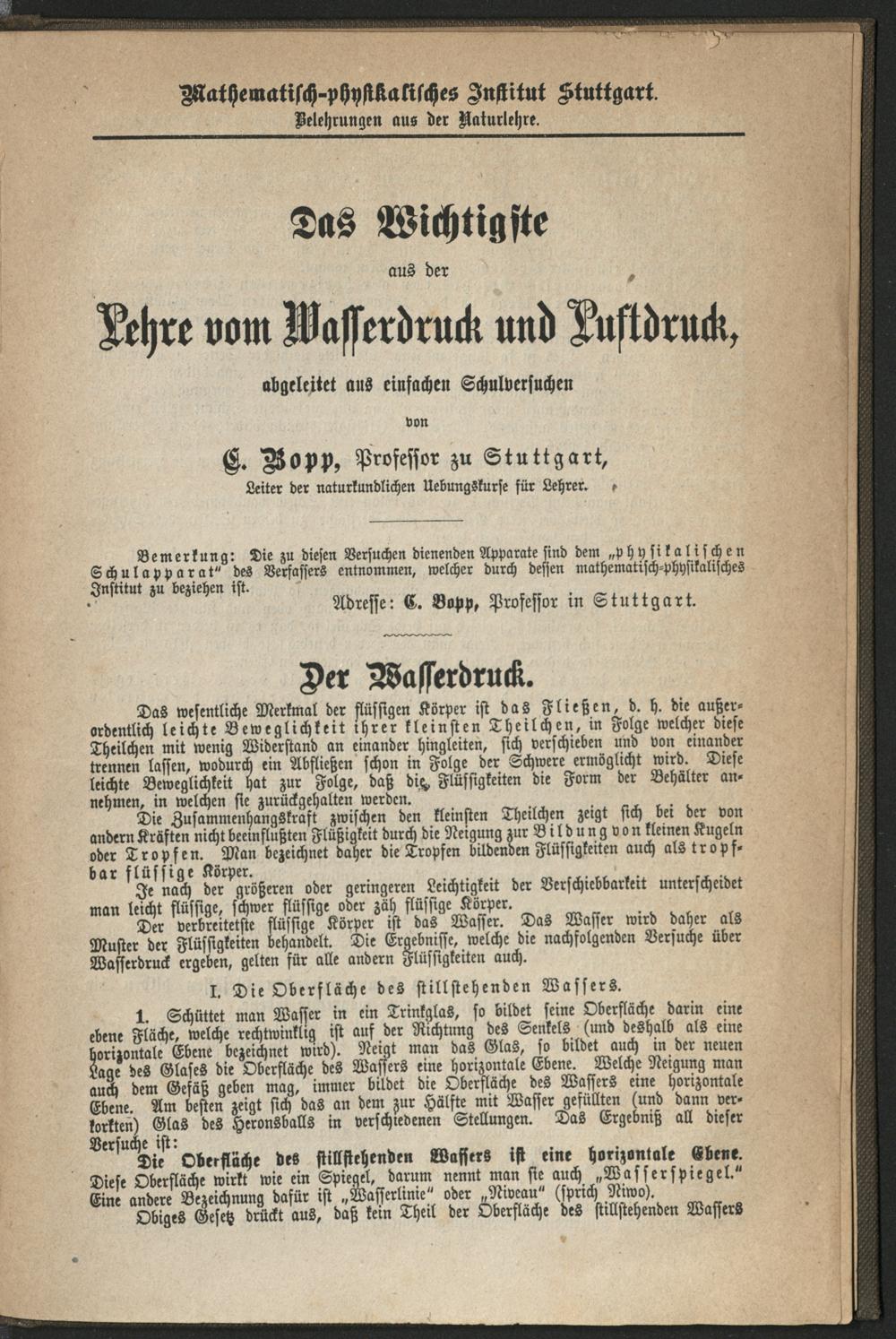 Das Wichtigste aus der Lehre vom Wasserdruck und Luftdruck, [...]