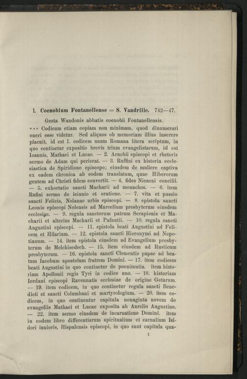 1. Coenobium Fontanellense=S. Vandrille. 742-47.