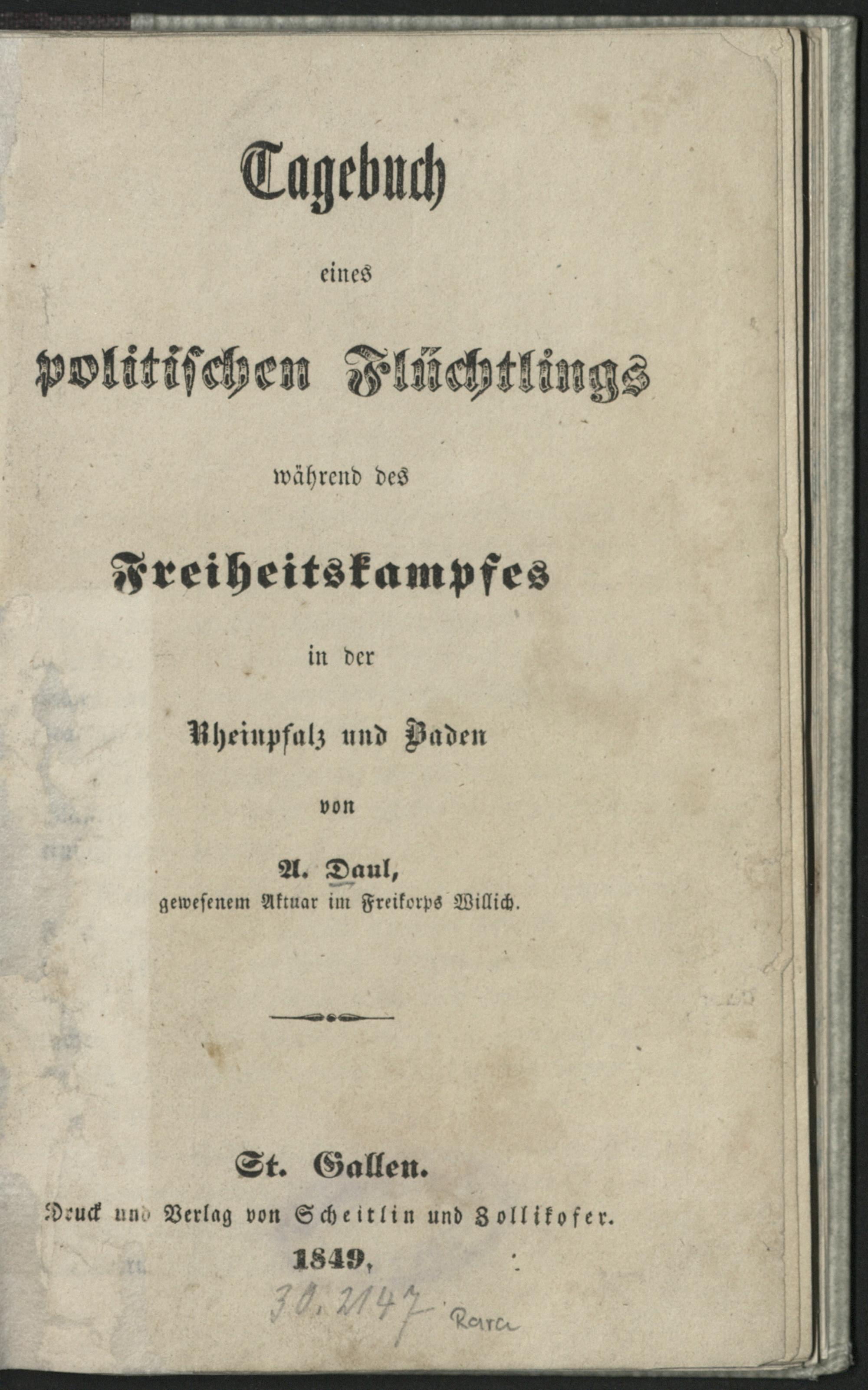 Tagebuch eines politischen Flüchtlings während des Freiheitskampfes in der Rheinpfalz und Baden / von A. Daul
