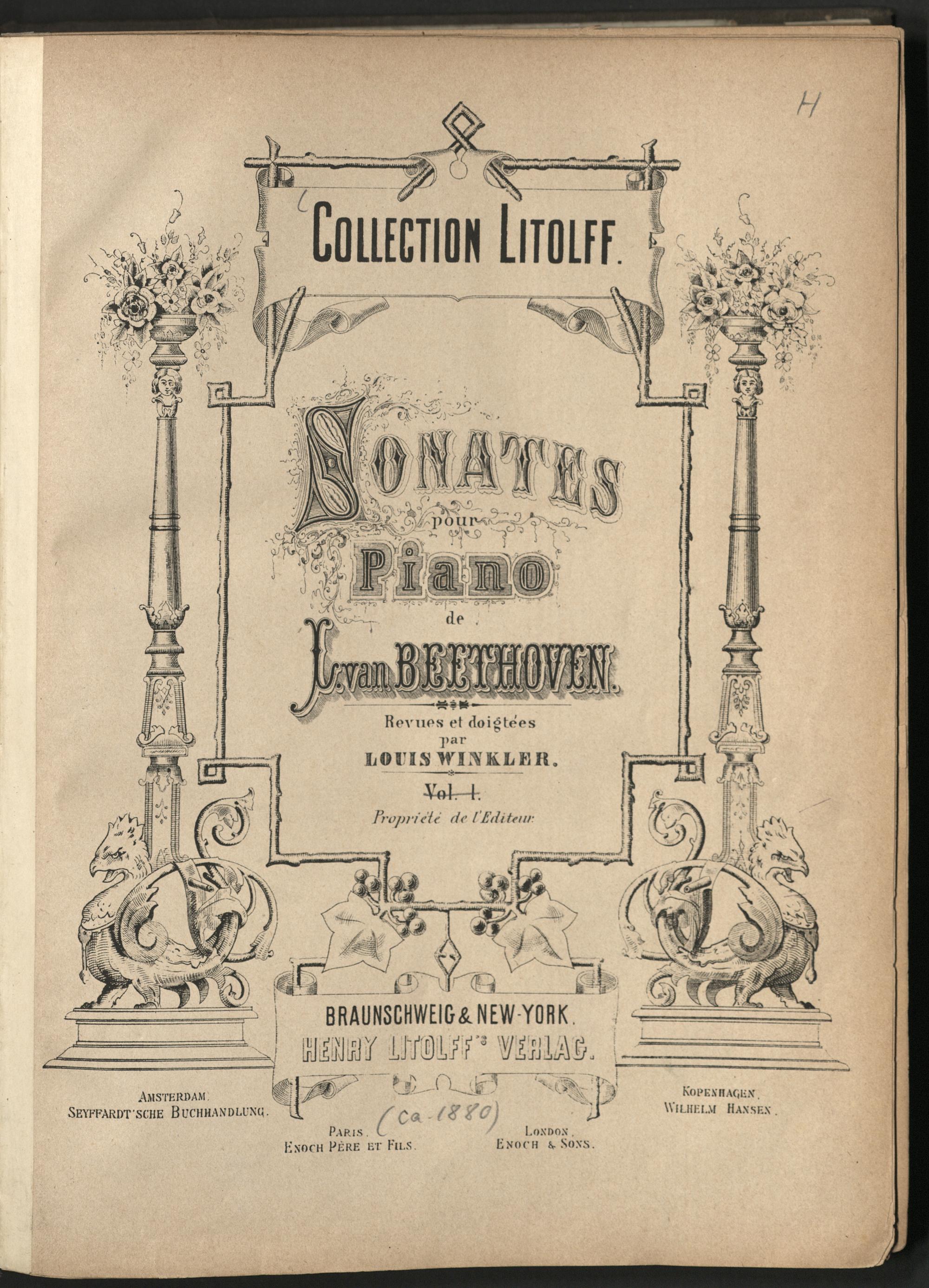 1 (1872) Sonatas pour piano / de L. van Beethoven ; revues et doigtées par Louis Winkler