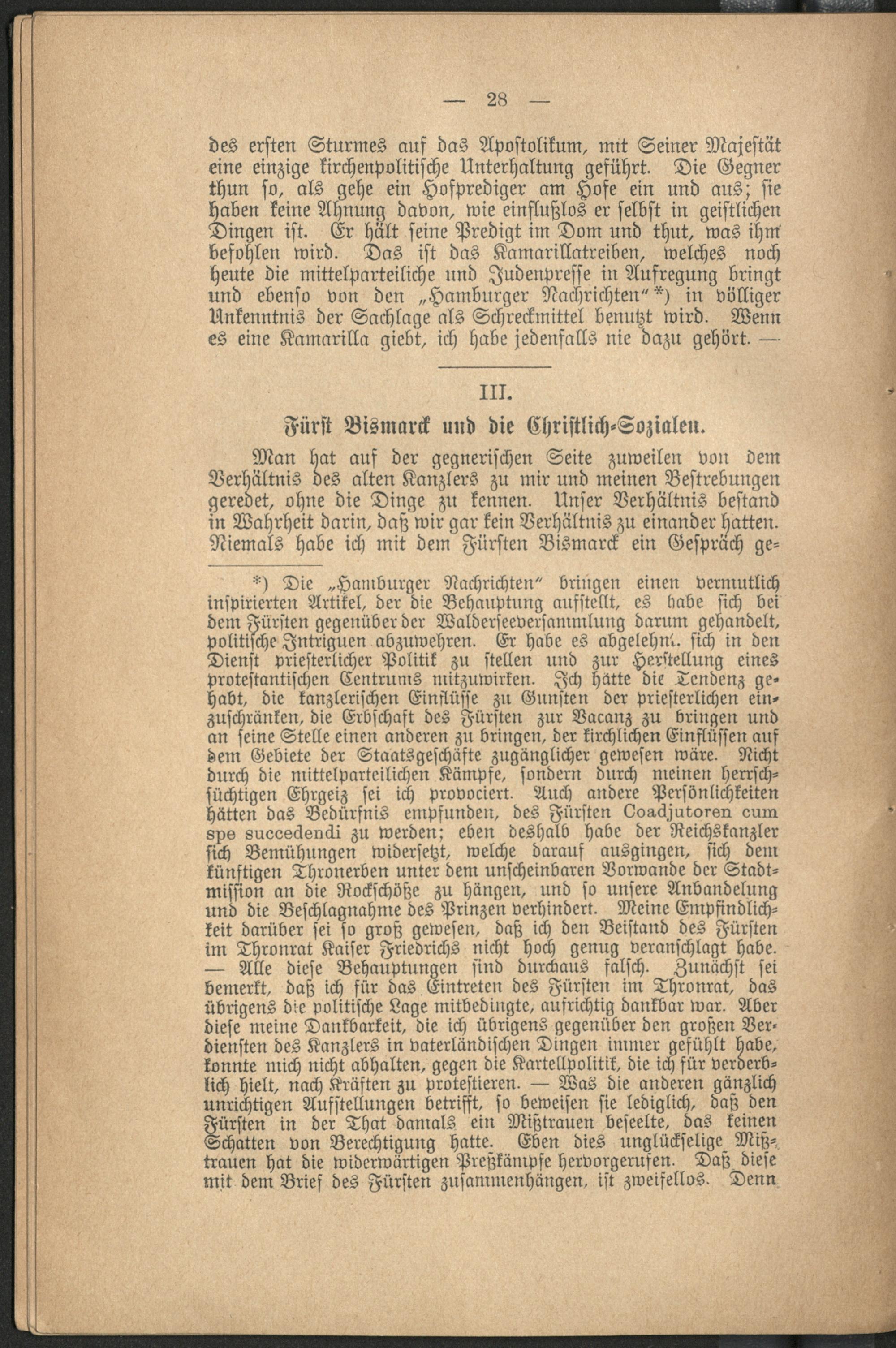 III. Fürst Bismarck und die Christlich=Sozialen.