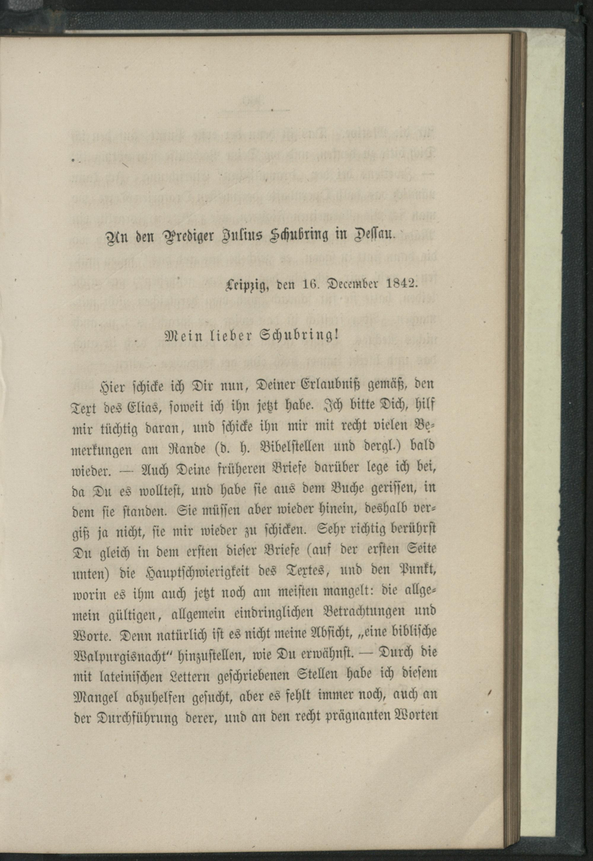 An den Prediger Julius Schubring in Dessau.