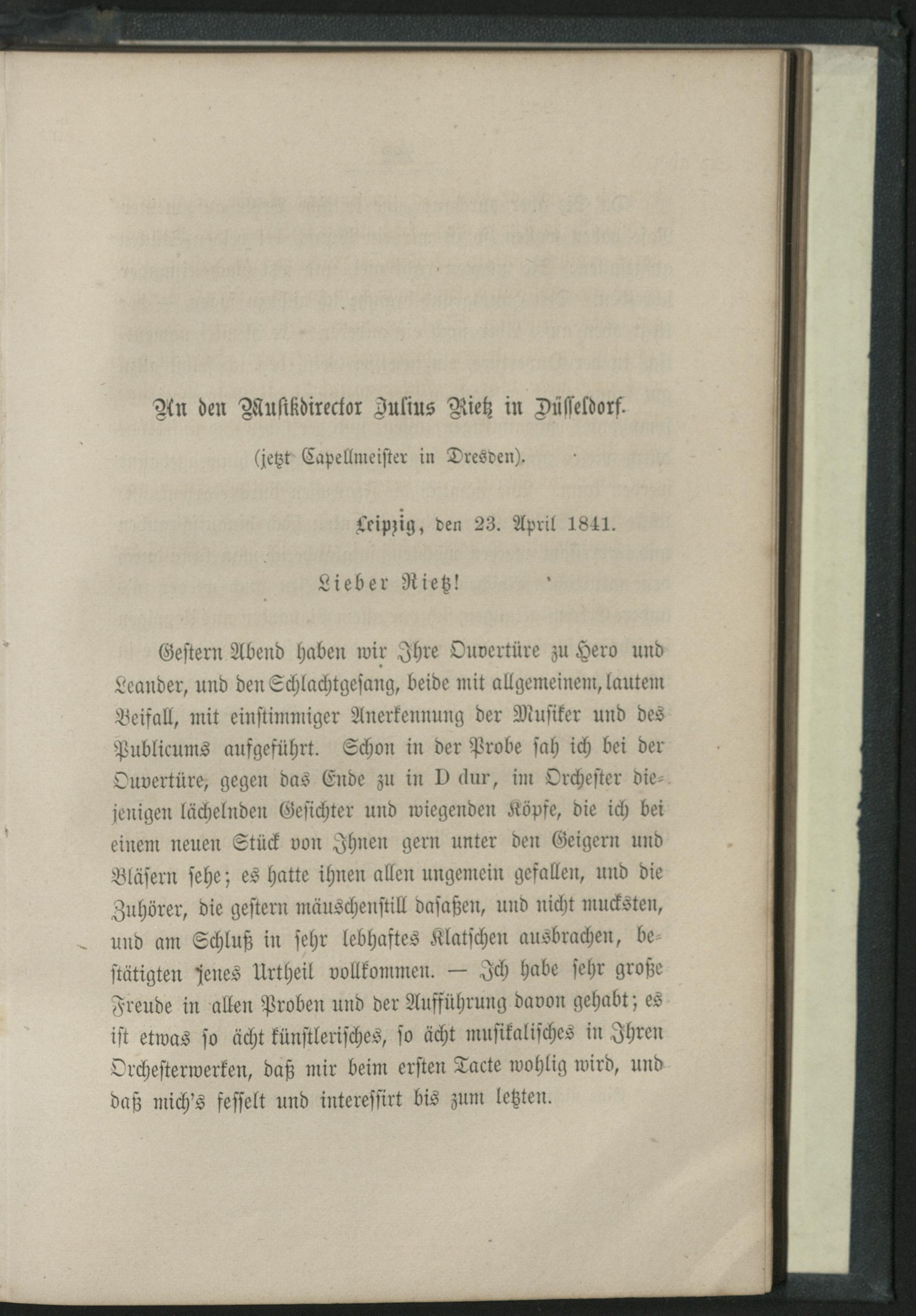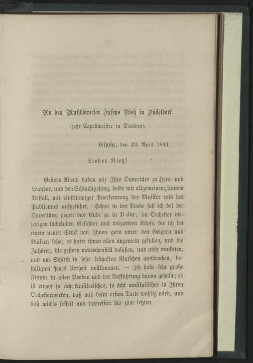 An den Musikdirector Julius Rietz in Düsseldorf.