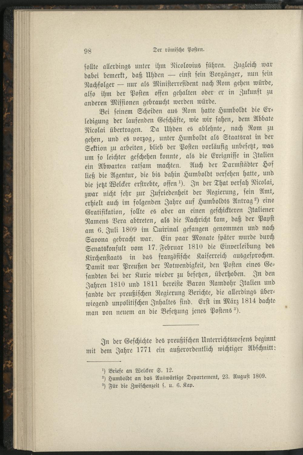 Zweites Buch. An der Spitze des Unterrichtswesens 1809 und 1810. Erstes Kapitel. Uebernahme und Vorgeschichte des Amtes.